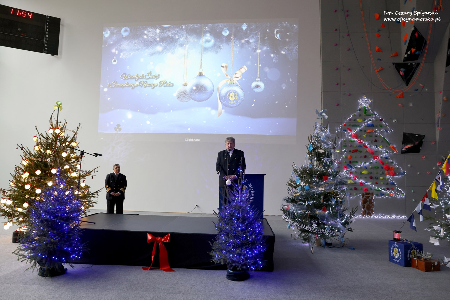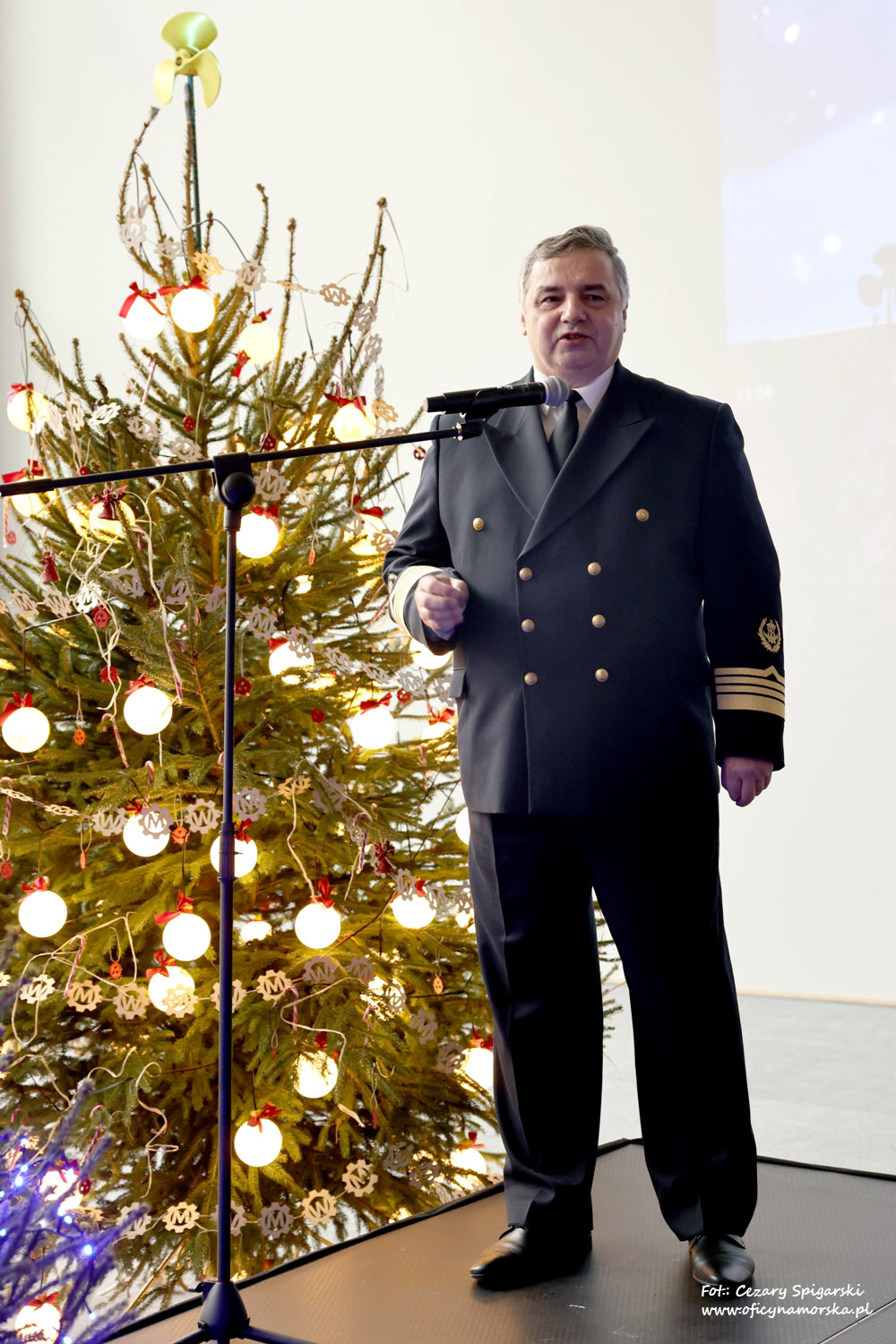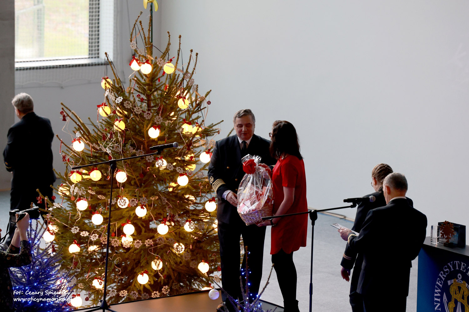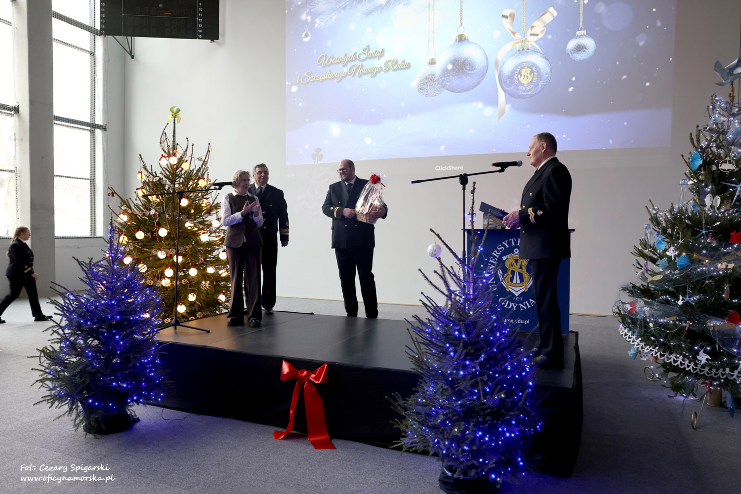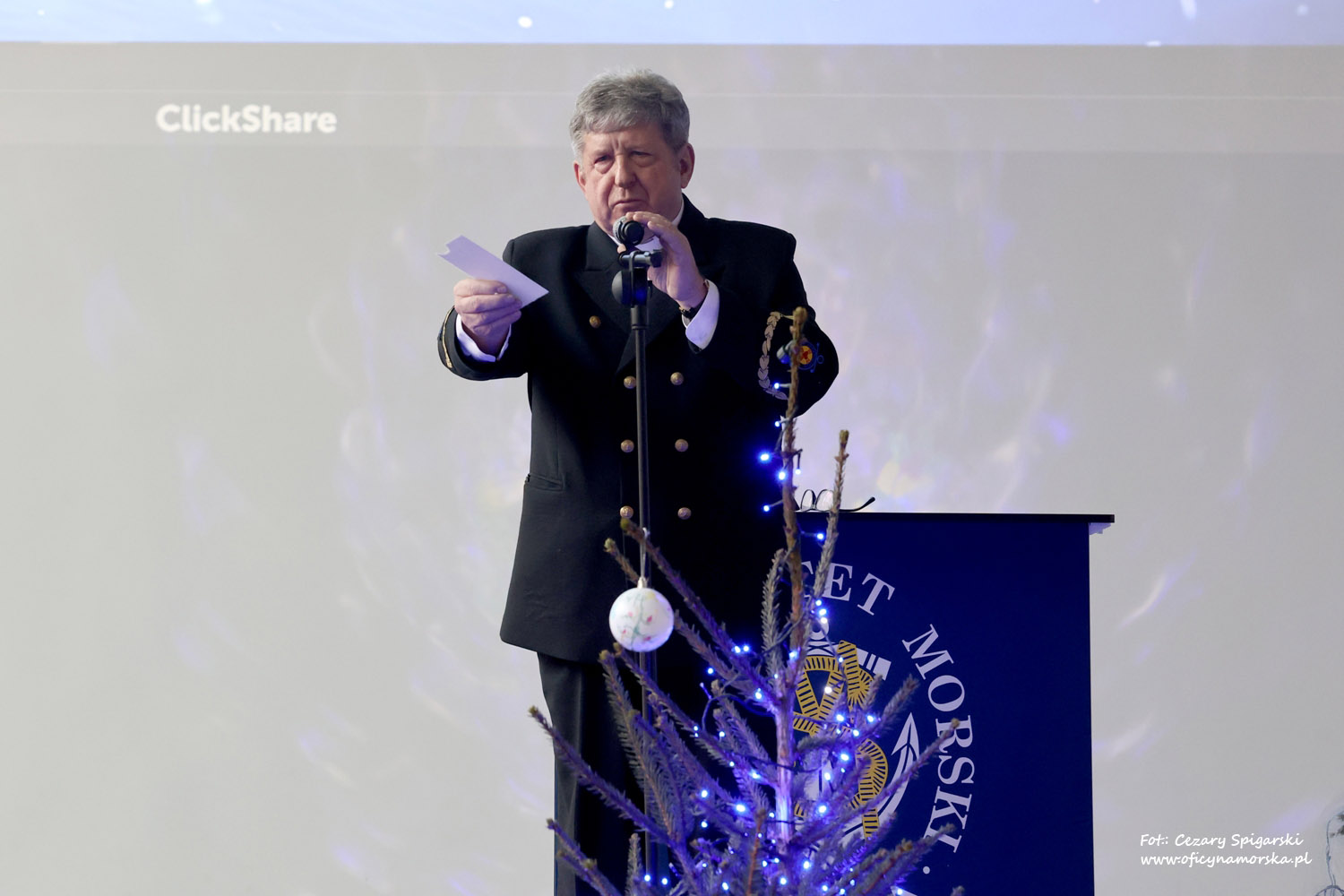Wydarzenie poprowadził mistrz ceremonii UMG, mgr Aleksander Gosk, który powitał zgromadzonych gości, a następnie oddał głos JM Rektorowi, prof. dr. hab. kpt. ż.w. Adamowi Weintritowi. JM Rektor, składając życzenia świąteczno-noworoczne, poprosił, aby w tym roku przy świątecznym stole wszyscy tutaj obecni życzliwie pomyśleli o tych, którzy w tym wyjątkowym okresie przebywają na morzu, będąc z dala od swoich bliskich i rodzin.
