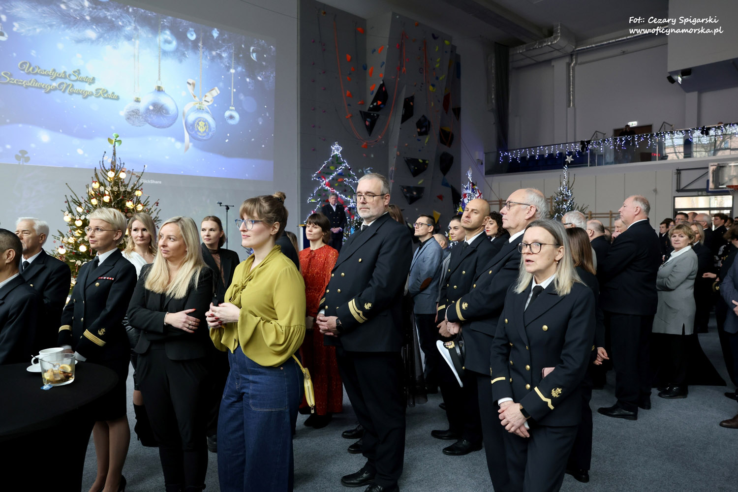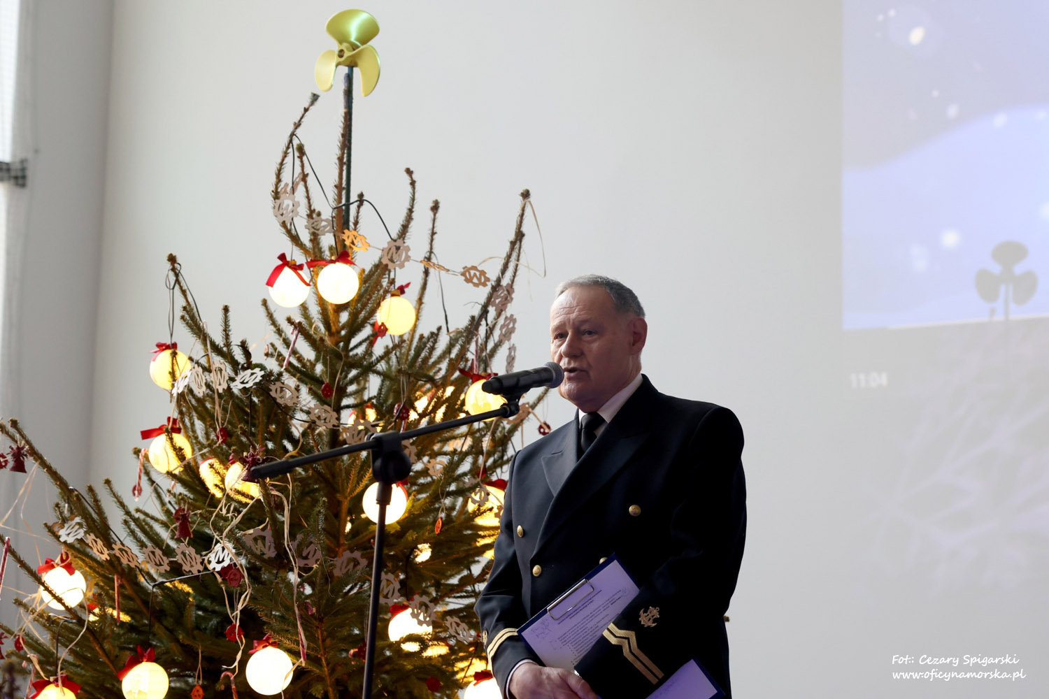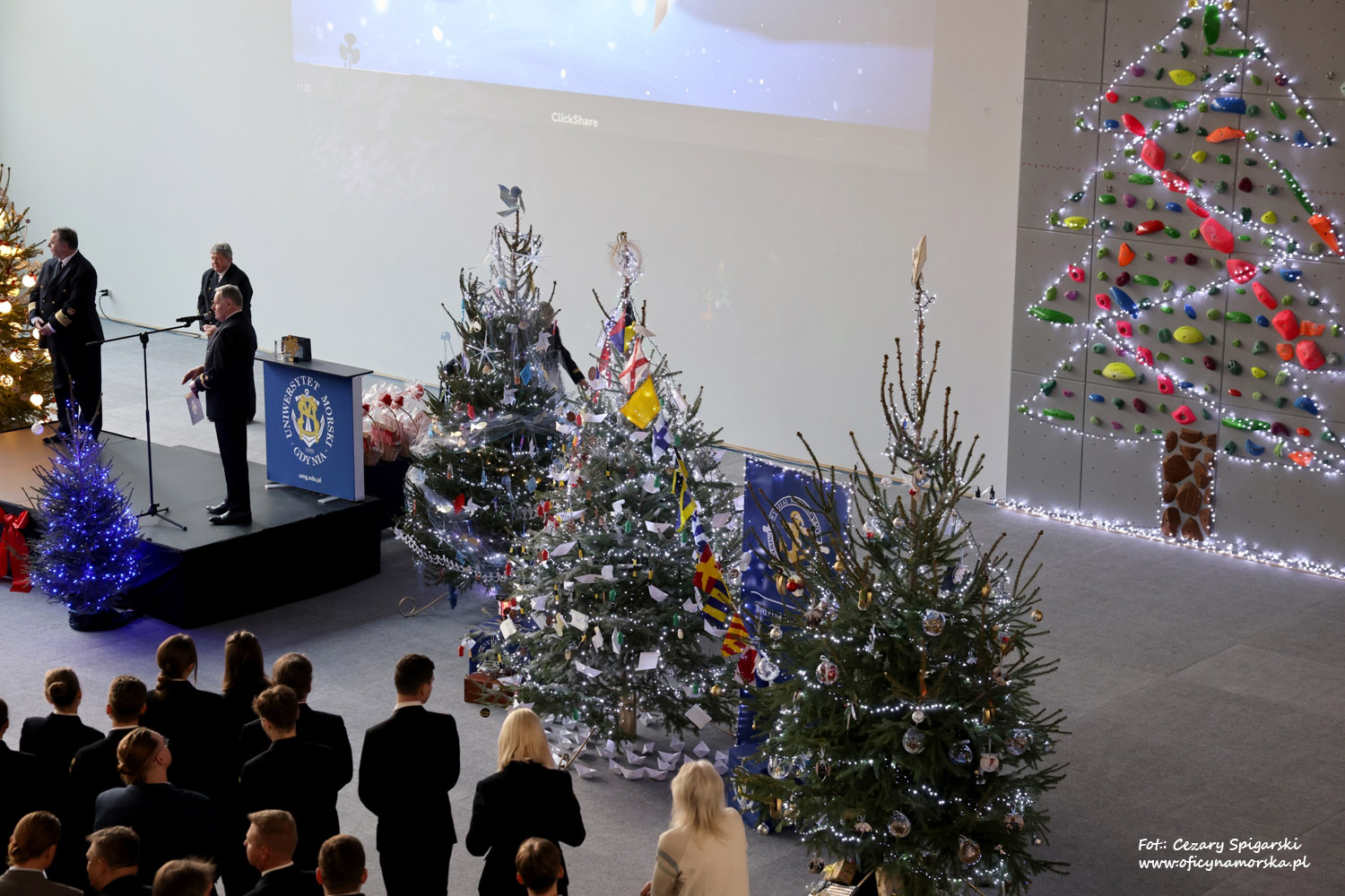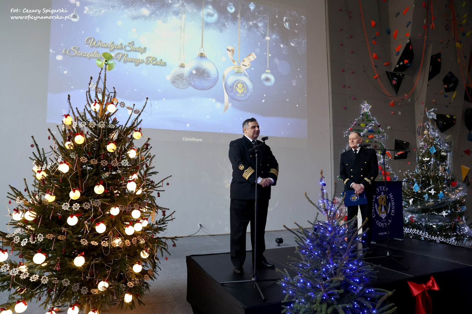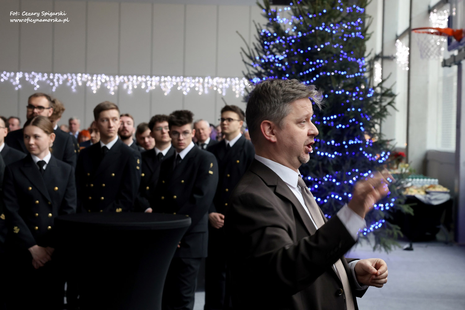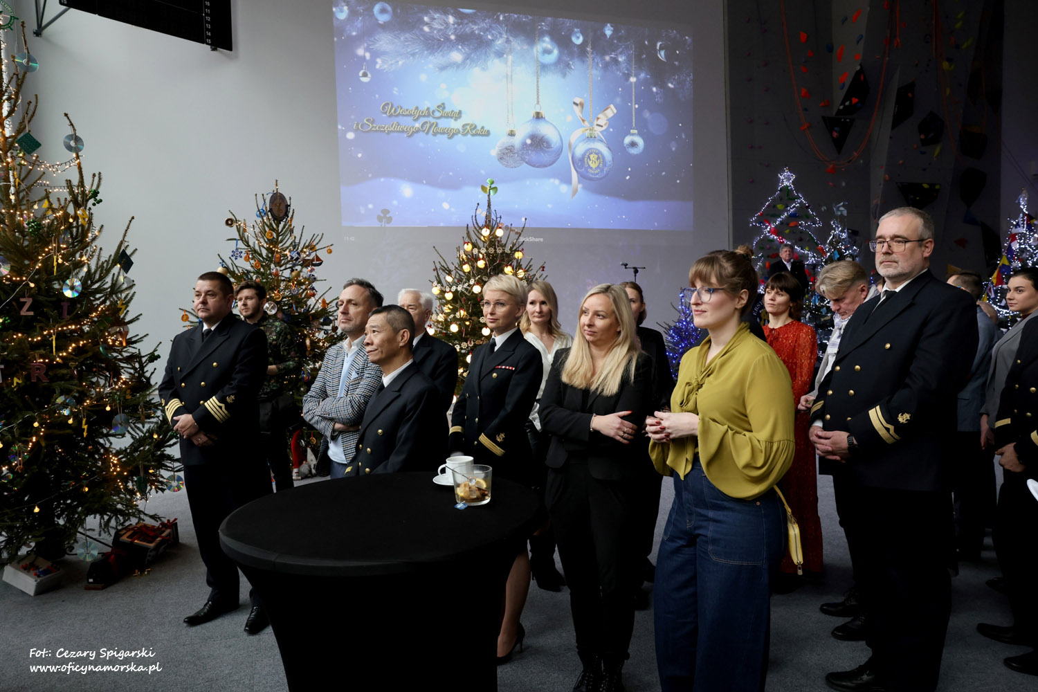 Wydarzenie poprowadził mistrz ceremonii UMG, mgr Aleksander Gosk, który powitał zgromadzonych gości, a następnie oddał głos JM Rektorowi, prof. dr. hab. kpt. ż.w. Adamowi Weintritowi. JM Rektor, składając życzenia świąteczno-noworoczne, poprosił, aby w tym roku przy świątecznym stole wszyscy tutaj obecni życzliwie pomyśleli o tych, którzy w tym wyjątkowym okresie przebywają na morzu, będąc z dala od swoich bliskich i rodzin.