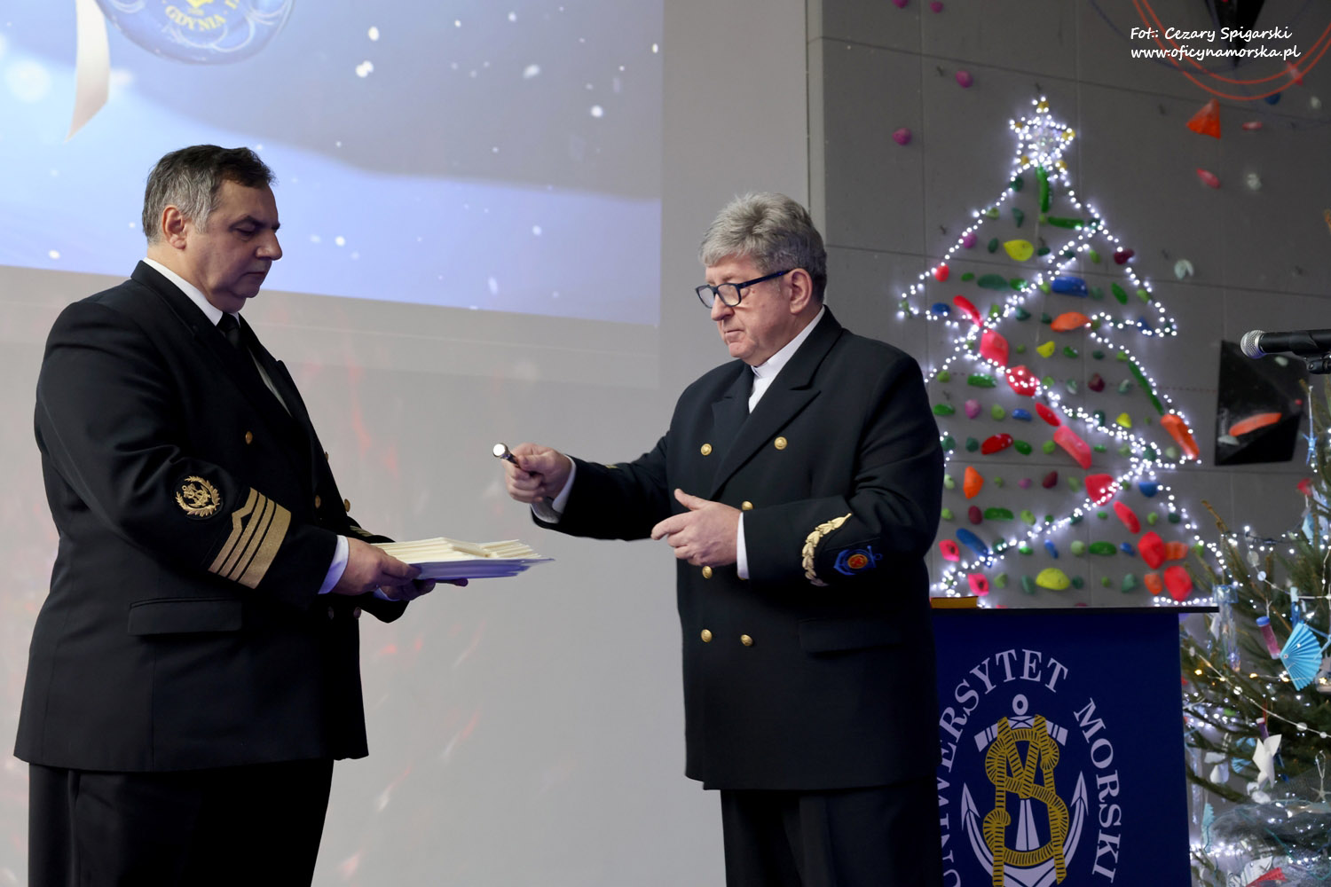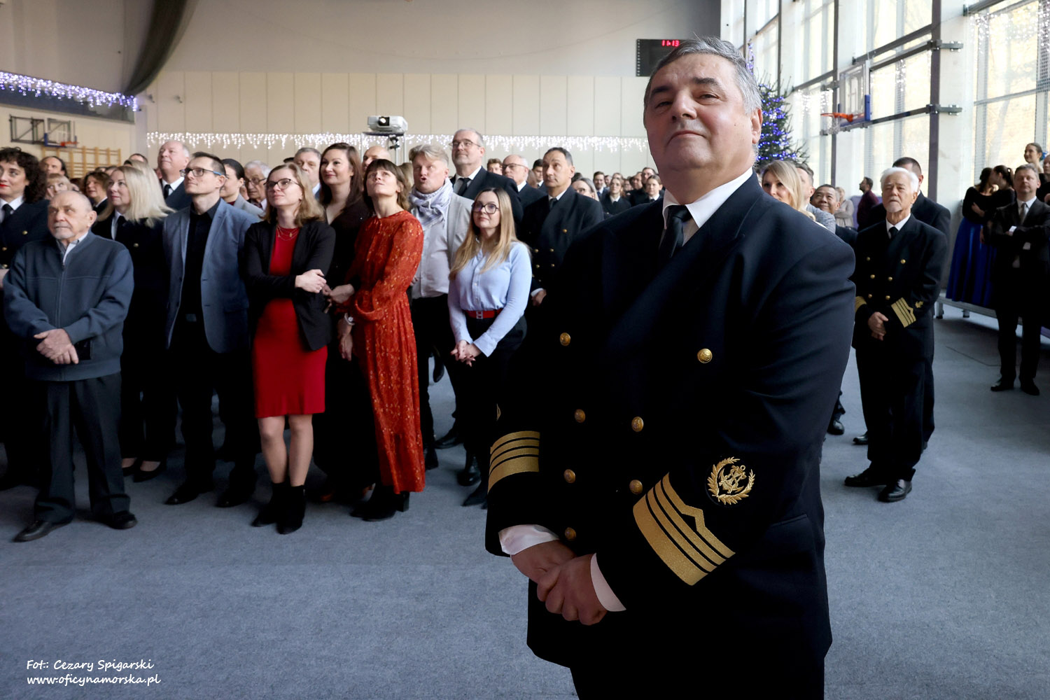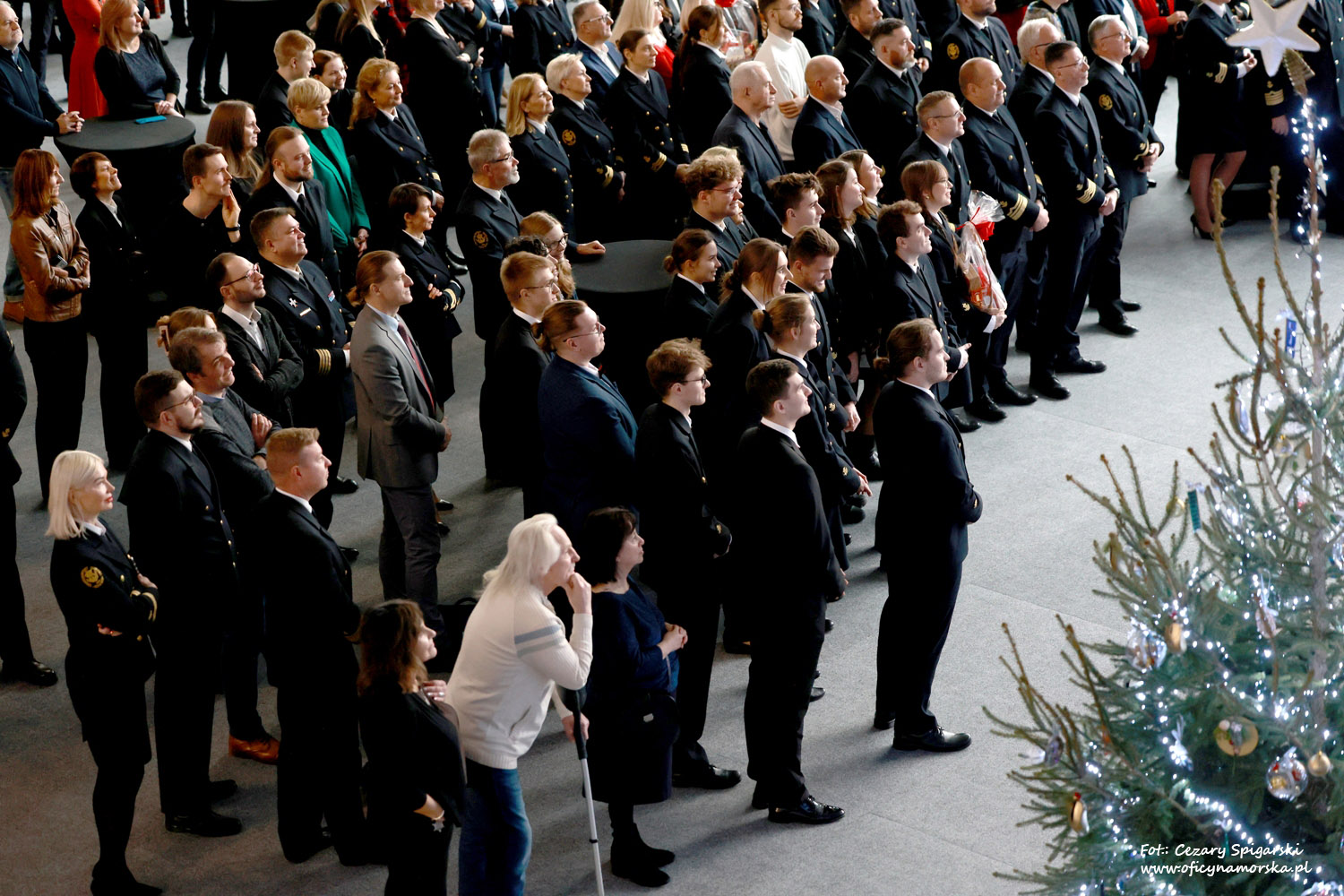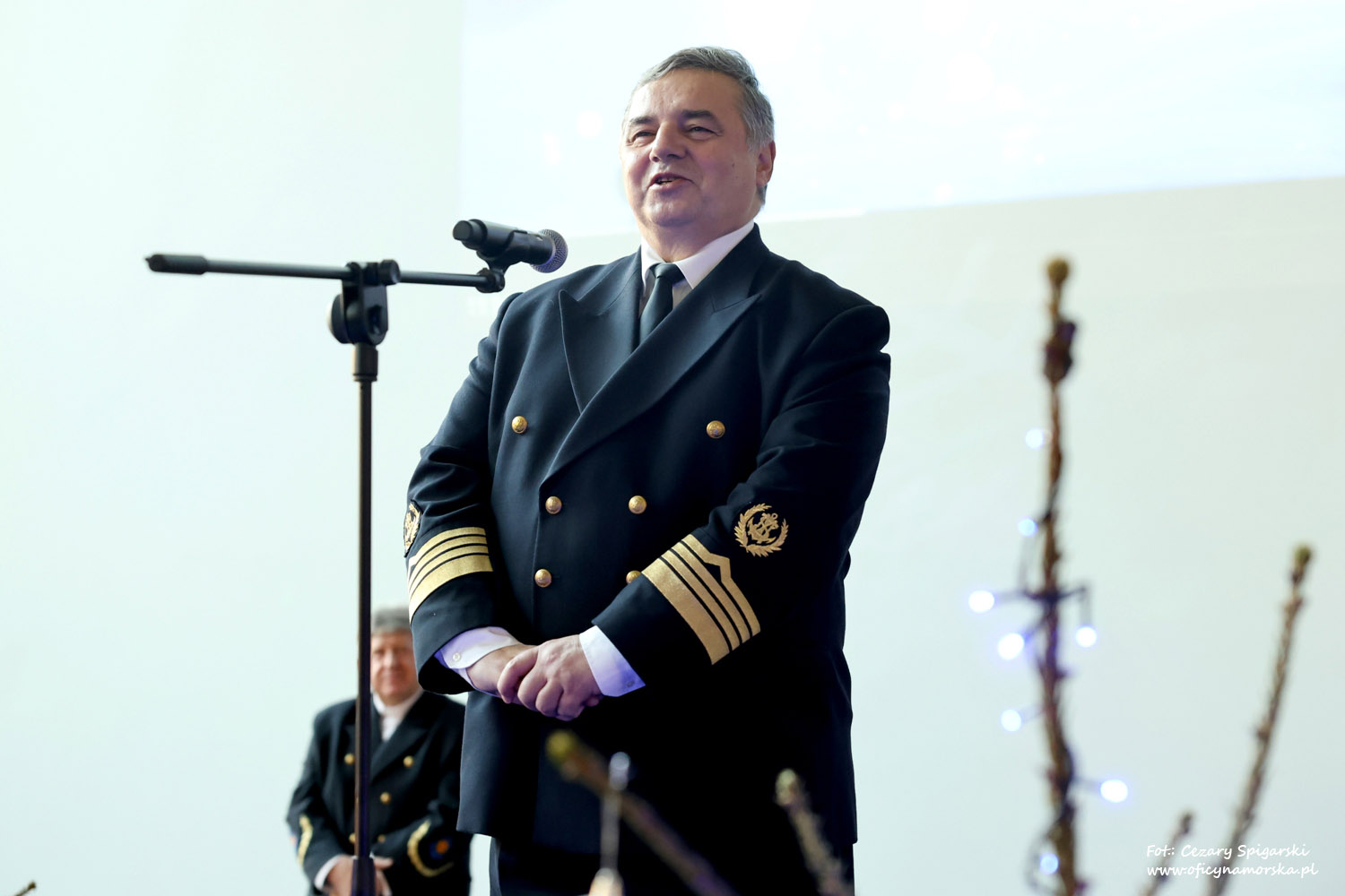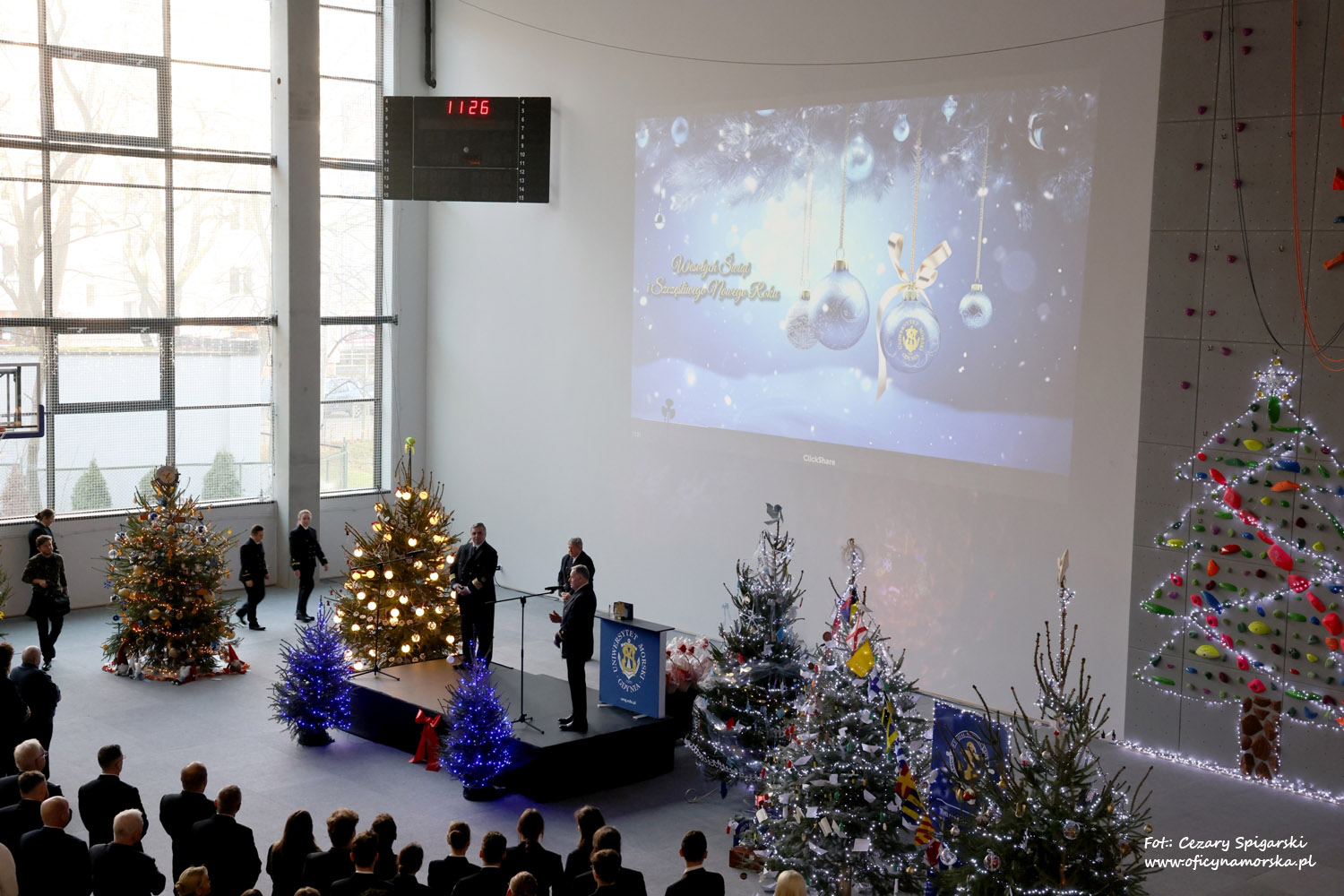 Wydarzenie poprowadził mistrz ceremonii UMG, mgr Aleksander Gosk, który powitał zgromadzonych gości, a następnie oddał głos JM Rektorowi, prof. dr. hab. kpt. ż.w. Adamowi Weintritowi. JM Rektor, składając życzenia świąteczno-noworoczne, poprosił, aby w tym roku przy świątecznym stole wszyscy tutaj obecni życzliwie pomyśleli o tych, którzy w tym wyjątkowym okresie przebywają na morzu, będąc z dala od swoich bliskich i rodzin.