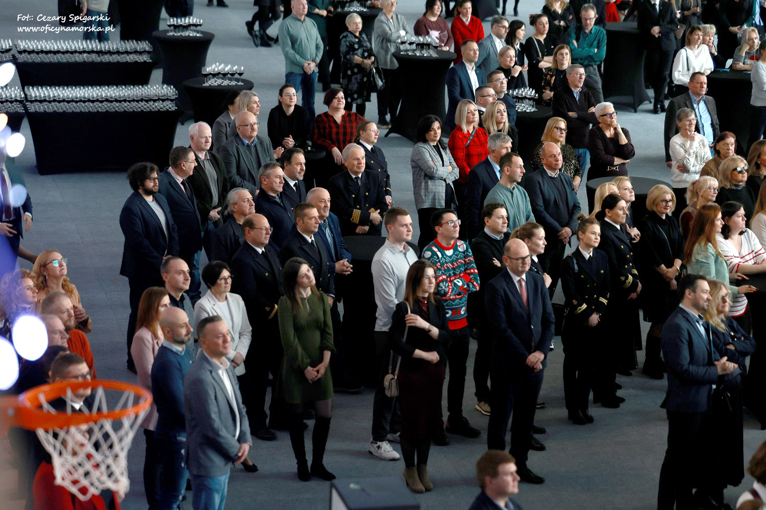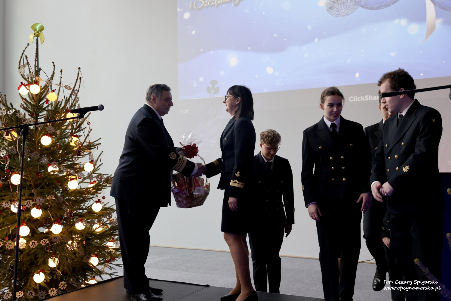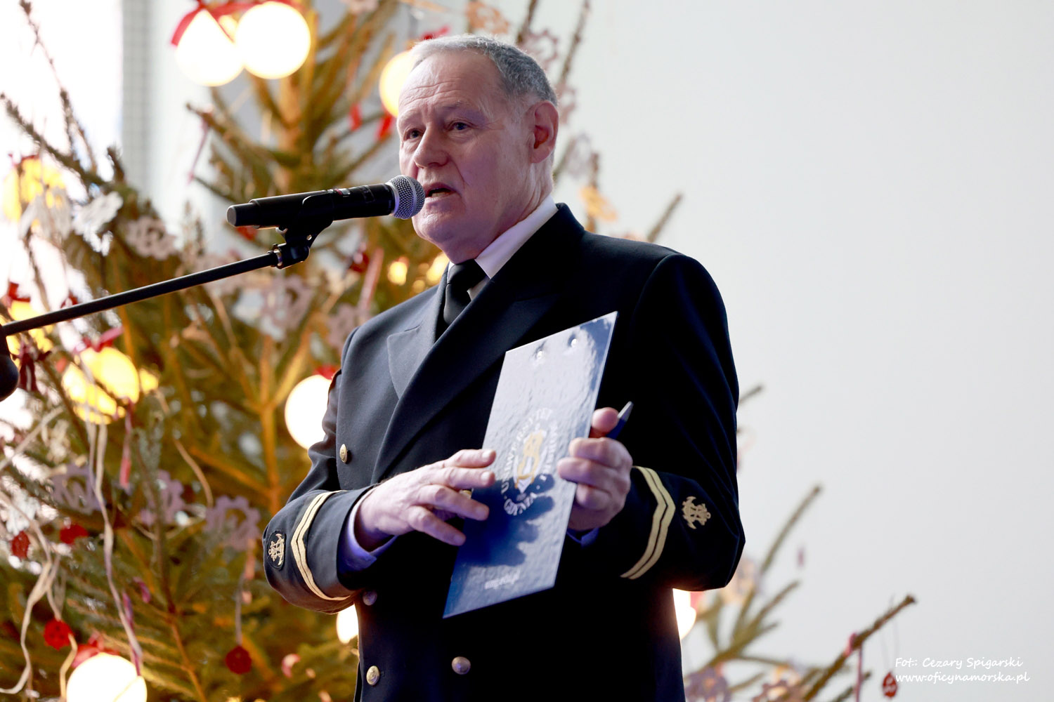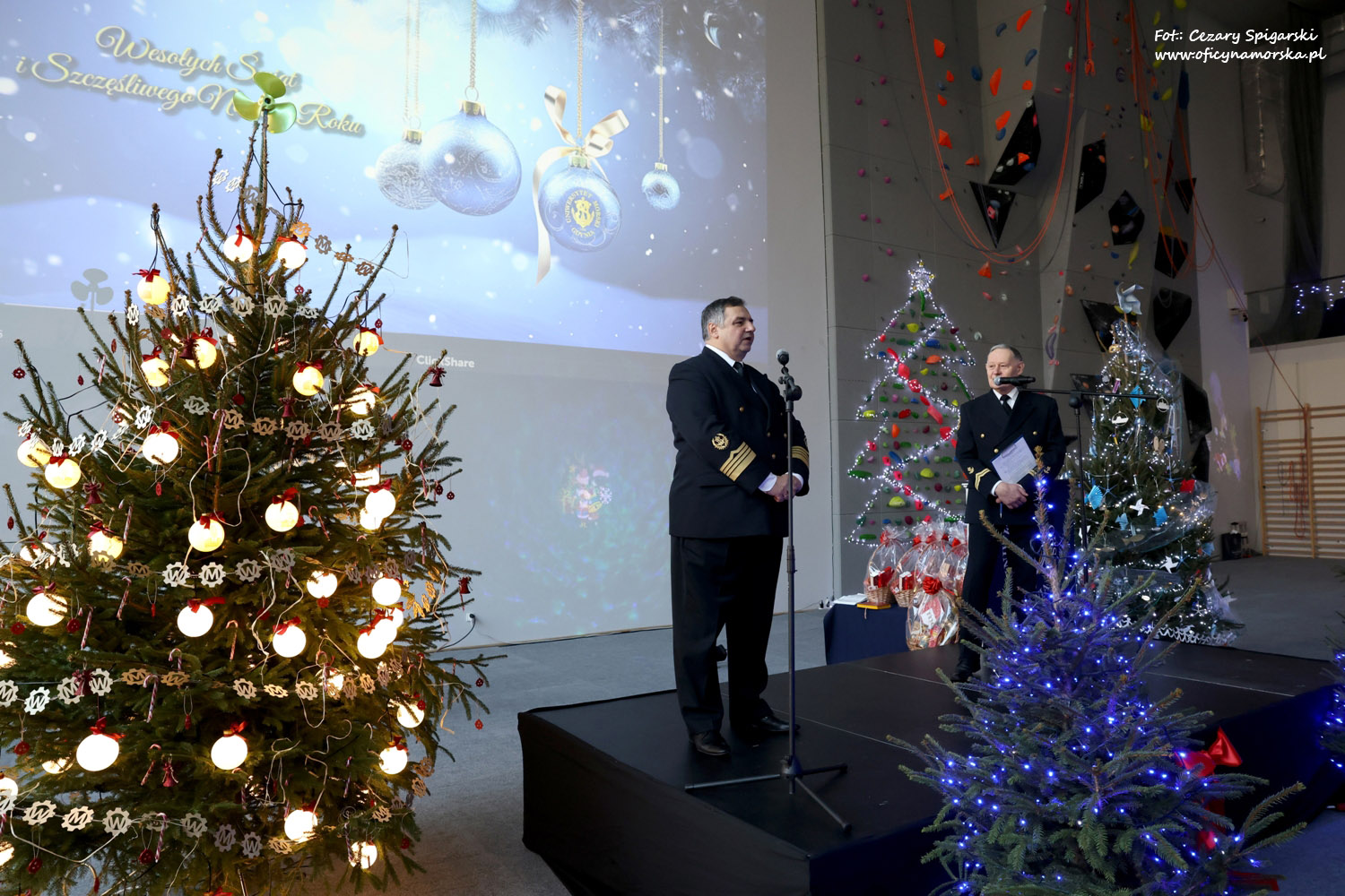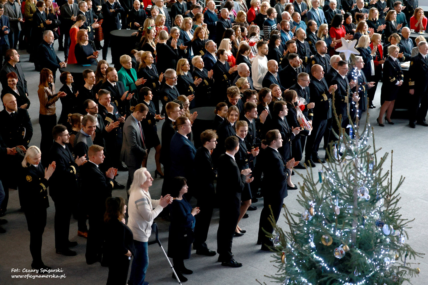 Wydarzenie poprowadził mistrz ceremonii UMG, mgr Aleksander Gosk, który powitał zgromadzonych gości, a następnie oddał głos JM Rektorowi, prof. dr. hab. kpt. ż.w. Adamowi Weintritowi. JM Rektor, składając życzenia świąteczno-noworoczne, poprosił, aby w tym roku przy świątecznym stole wszyscy tutaj obecni życzliwie pomyśleli o tych, którzy w tym wyjątkowym okresie przebywają na morzu, będąc z dala od swoich bliskich i rodzin.