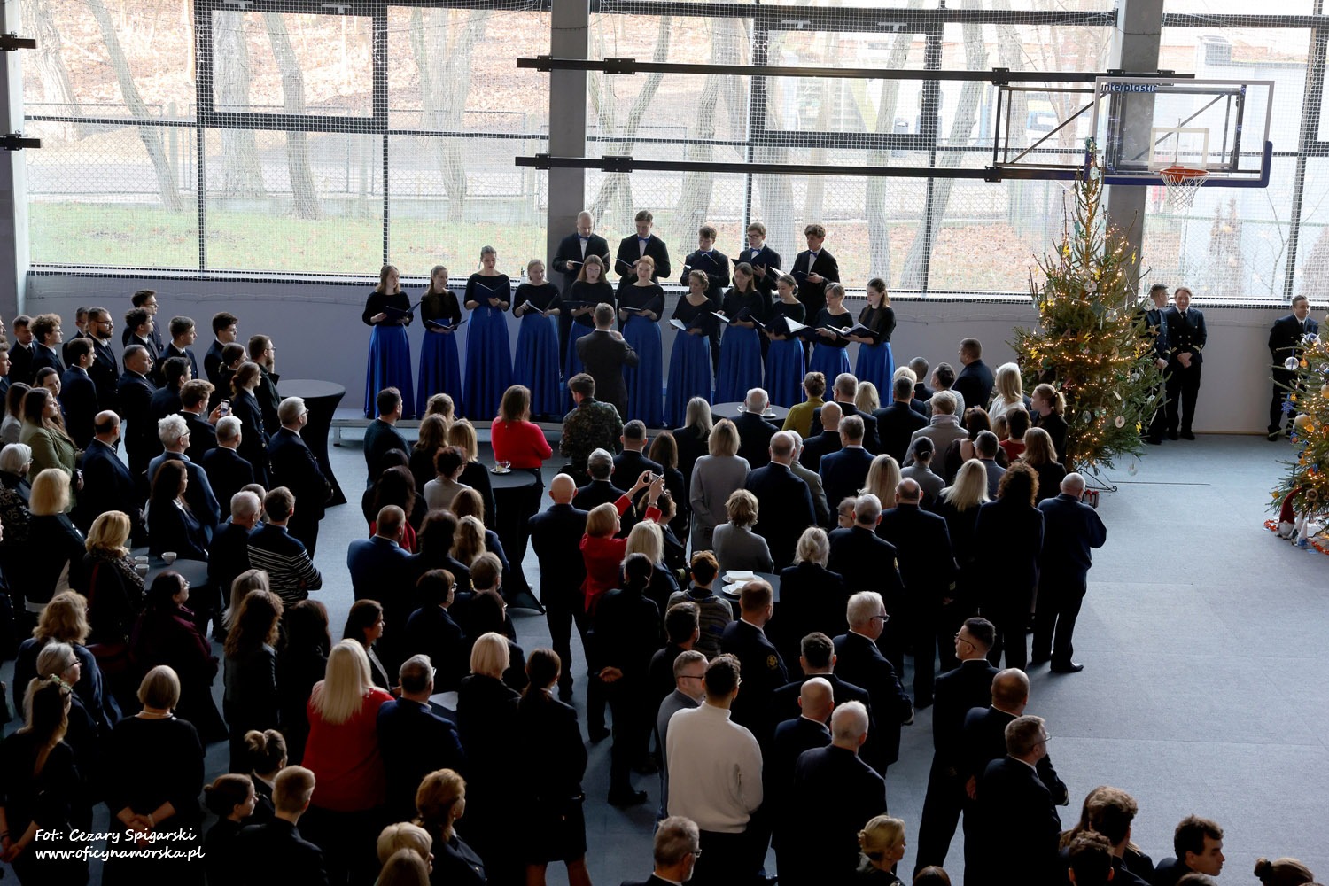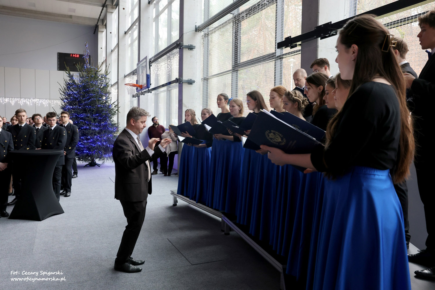Spotkanie było okazją do podzielenia się opłatkiem i wysłuchania kolęd w wykonaniu Akademickiego Chóru Uniwersytetu Morskiego w Gdyni pod dyrekcją dr. Karola Hilli.