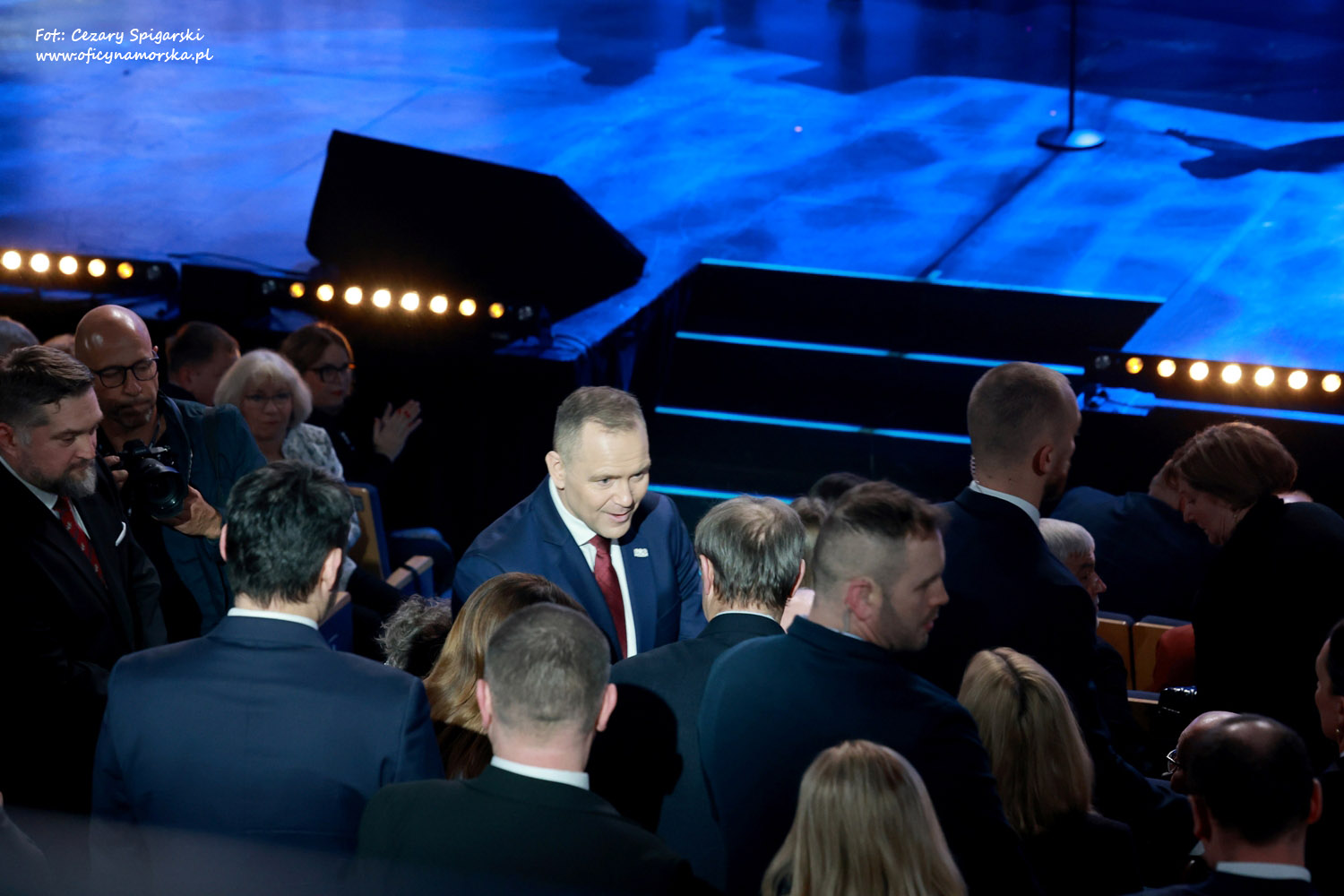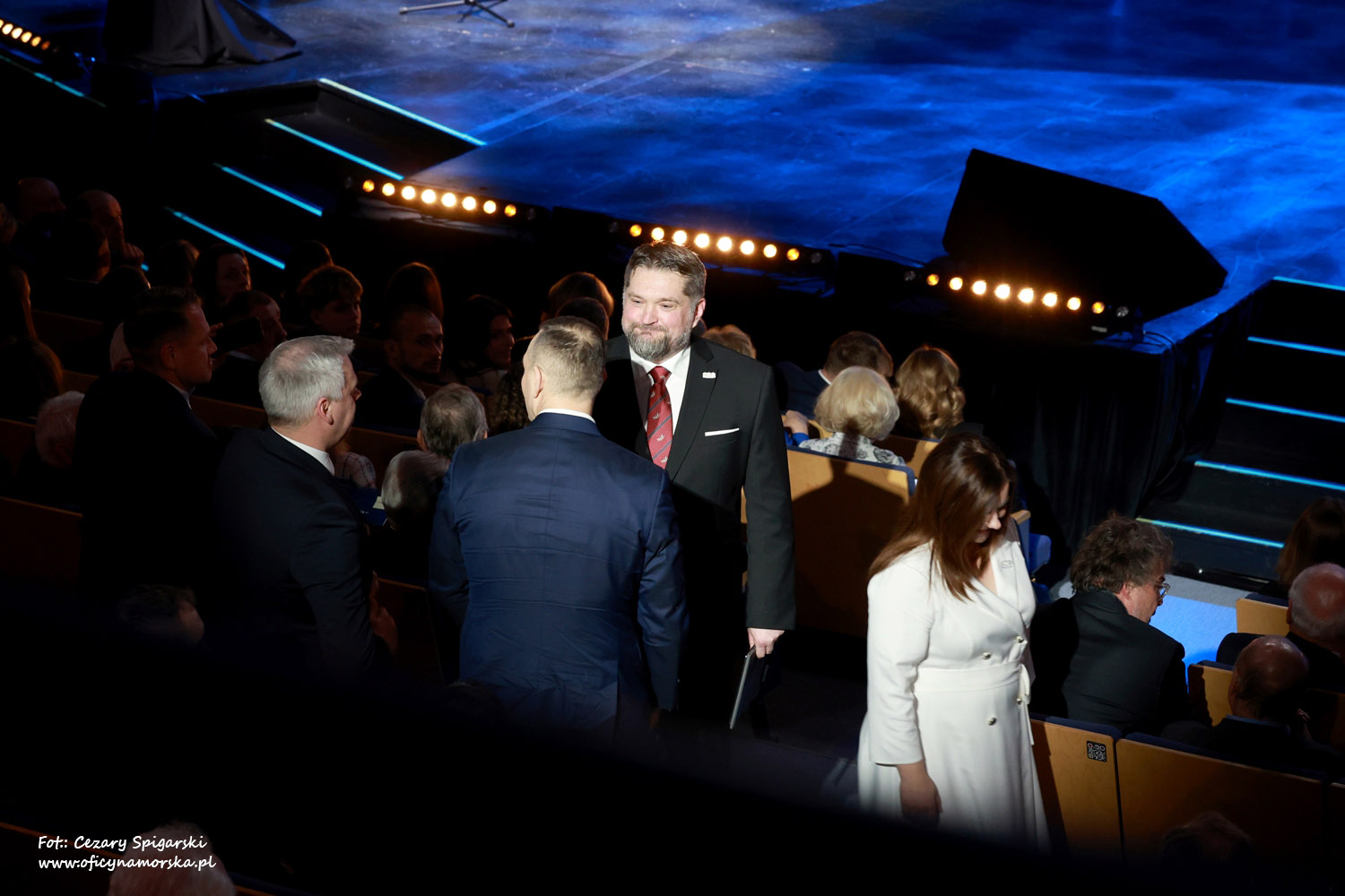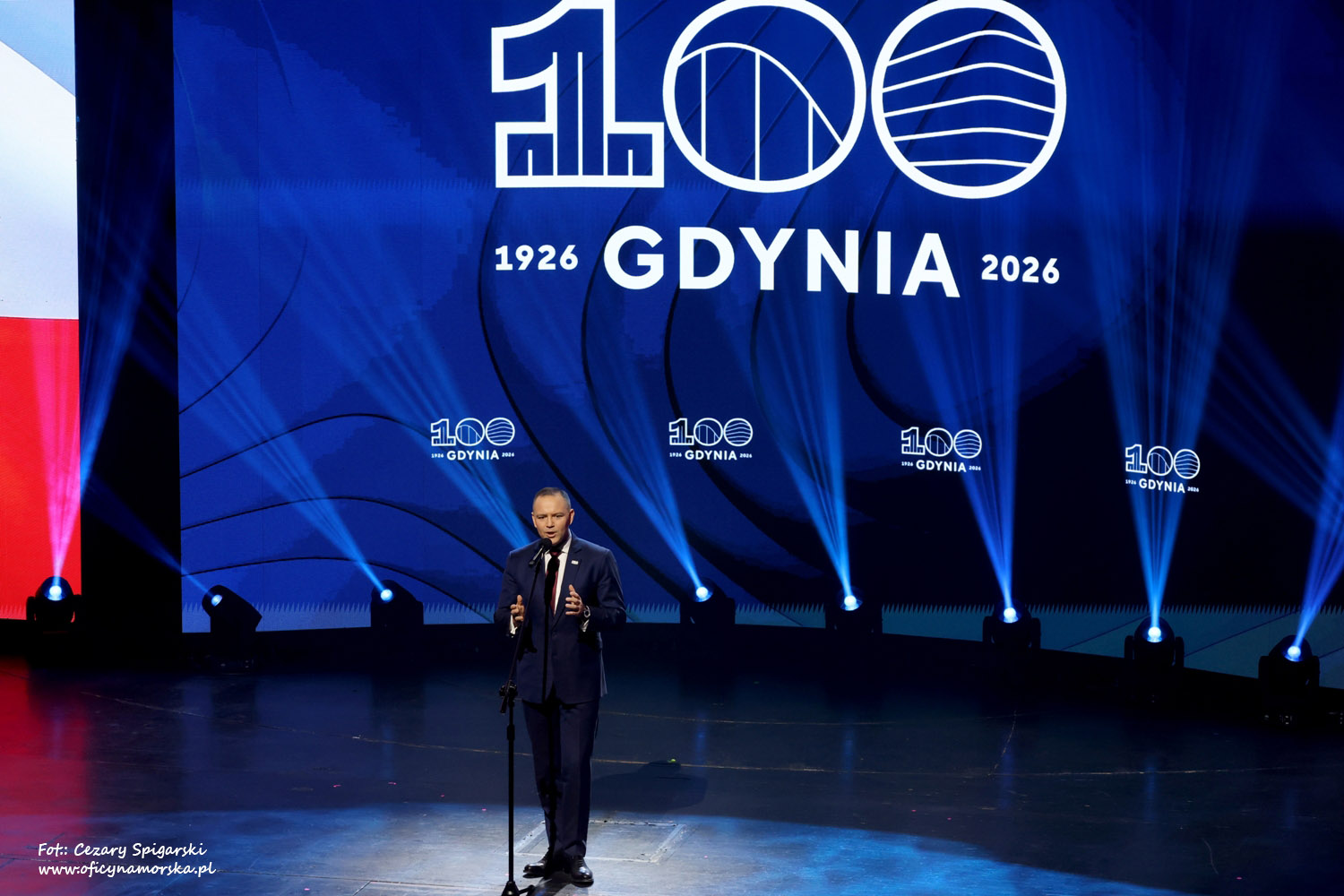 – Wszystko to możliwe jest także dzięki temu, że Gdynia jest przecież ważnym nie tylko dla Polski ale i dla całej Europy ośrodkiem akademickim z Uniwersytetem Morskim, z Akademią Marynarki Wojennej, także ważnym miejscem na mapie kulturalnej Rzeczypospolitej. Jesteśmy przecież w Teatrze Muzycznym imienia Danuty Baduszkowej, dla mnie osobiście też ważnym bo spędzałem tutaj piękne chwile. Gdynia jest miejscem, w którym odbywają się znane w Polsce i w Europie festiwale filmów fabularnych i festiwal Niepokorni, Niezłomni, Wyklęci. Ale ten 100-letni jubileusz, ten piękny jubileusz skłania nas także do tego, aby odpowiedzieć sobie na pytanie, co i ile musiało się wydarzyć, abyśmy my, dzisiaj wolni Polacy w wolnej Rzeczypospolitej, w pięknej polskiej Gdyni mogli ten wspaniały jubileusz świętować.