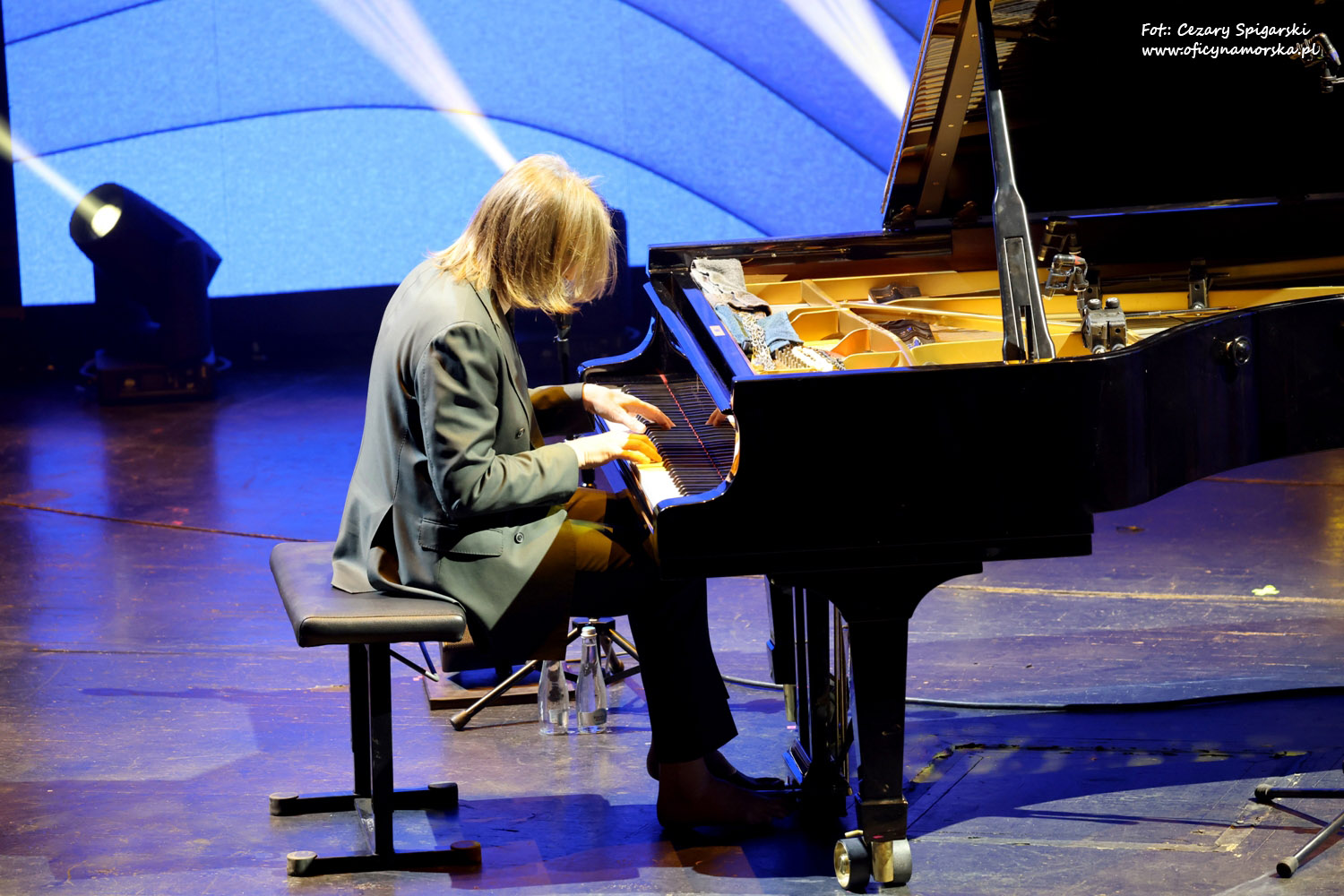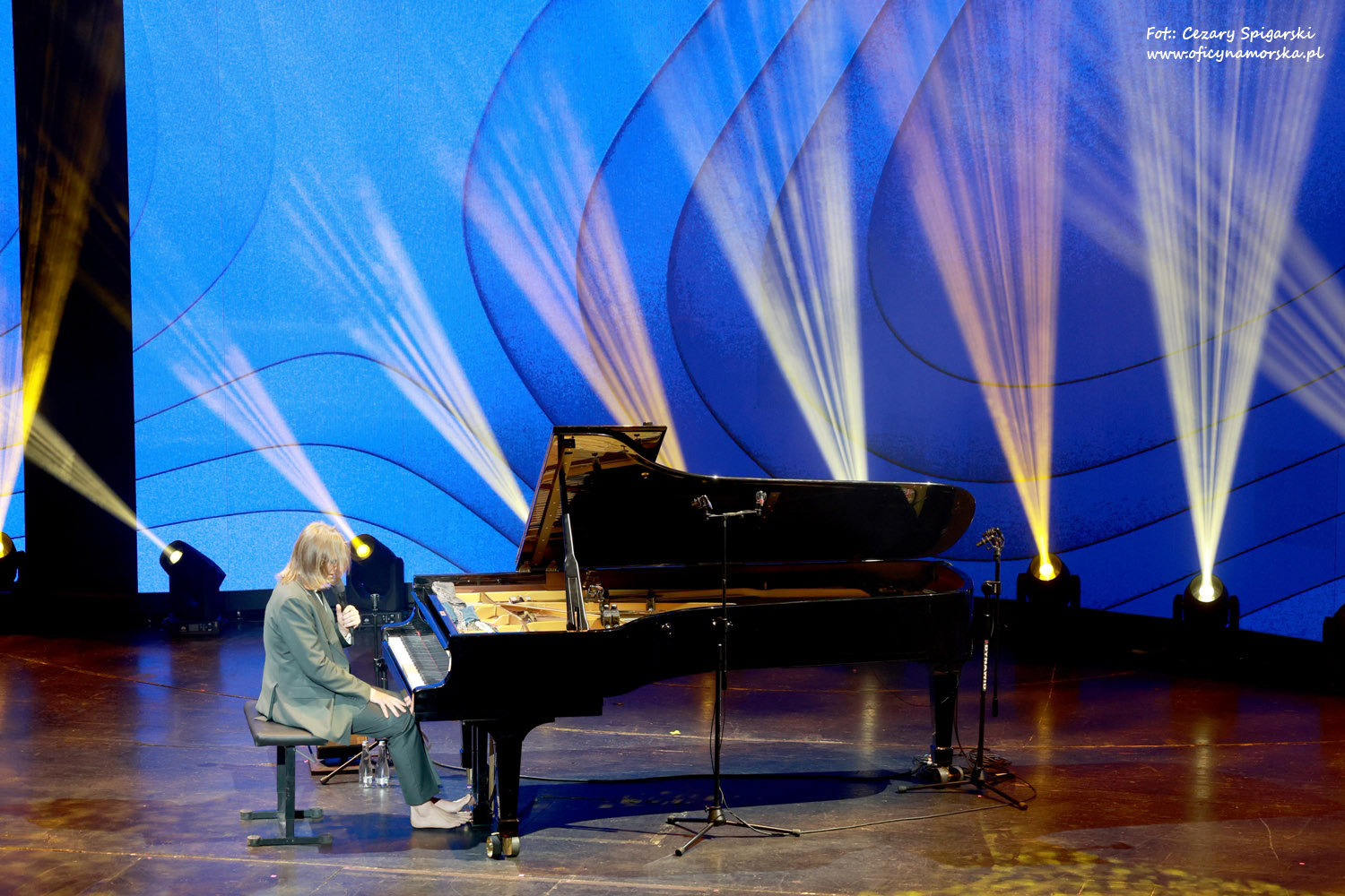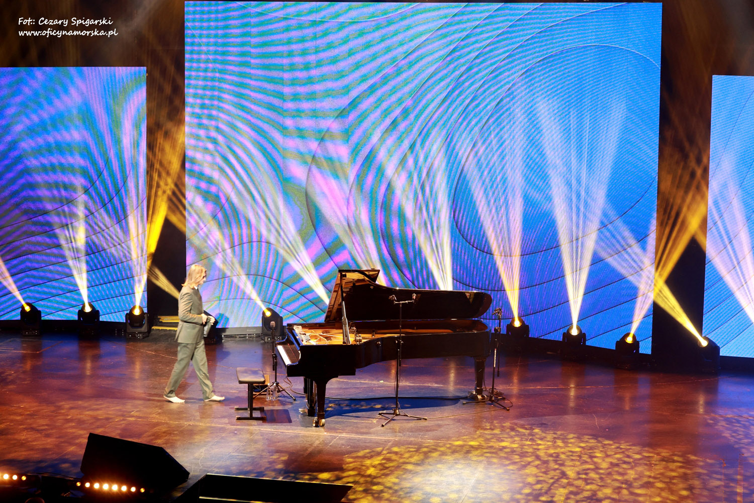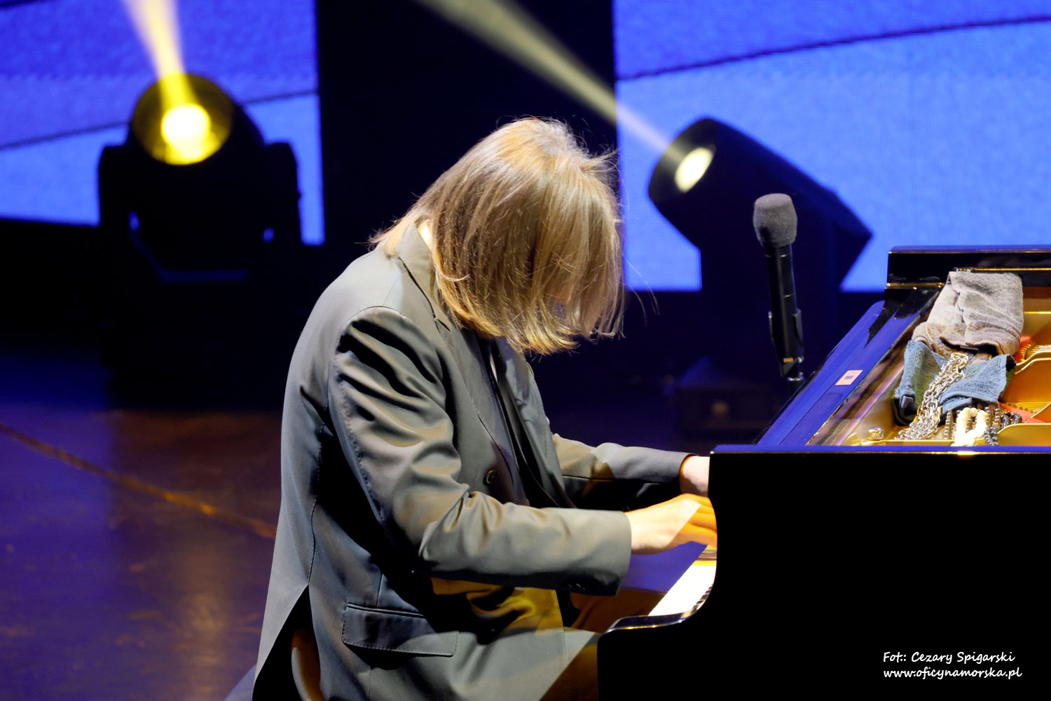 Na zakończenie zebrani wysłuchali koncertu fortepianowego. Koncert w wykonaniu Leszka Możdżera (z prośbą organizatorów skierowaną do fotoreporterów o wykonywanie zdjęć tylko przez pierwsze pięć minut – respektowaną przez nas wszystkich), który wykazał się niezwykłym talentem muzycznym, nieskazitelnym wykonaniem, jednak… Odniosłem wrażenie, że nawet przyjmując za pewnik Jego ekstrawagancję (choćby brak obuwia widoczny na zdjęciach), nie mogłem zrozumieć zwykłych, a zasadniczych braków wychowania. Nie wiedziałem czy występuje przed nami ten znany artysta, czy może Jego dubler – nie raczył spojrzeć na nas zza zasłony włosów, wyrażał podziękowania i informował o kolejnych swoich muzycznych przedstawieniach, jednak, siedząc na zydlu, do nikogo się nie odwrócił, nie spojrzał na widownię, popijał przy tym (chyba) wodę z butelki, co było słychać i widać. Mam na takie zachowanie własną nazwę… Mimo tego na zakończenie sala nagrodziła jazzmana gromkimi brawami, no cóż… (dop. red. Cezary Spigarski)