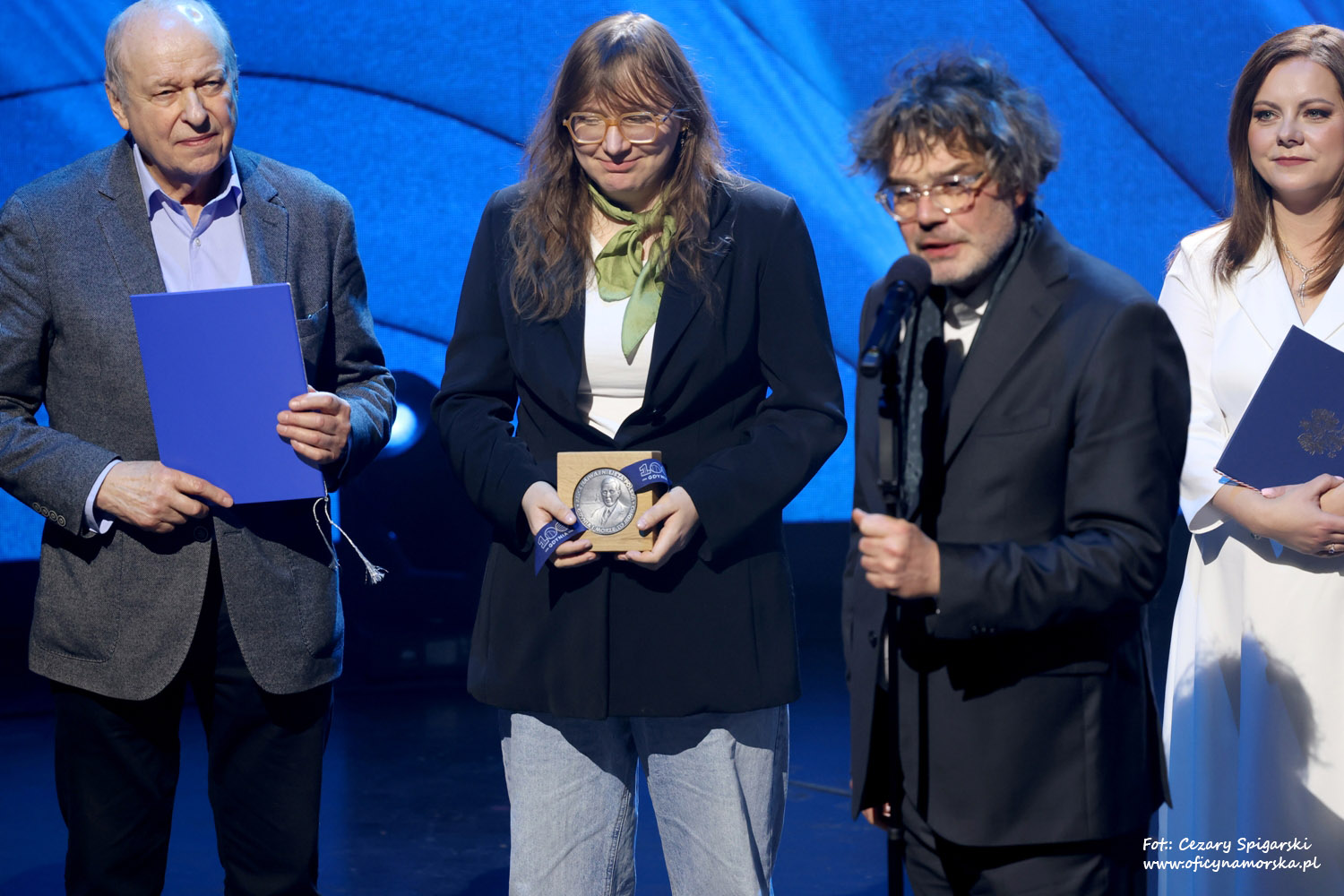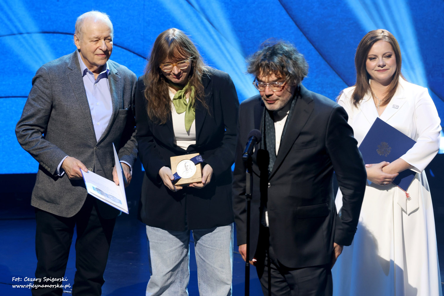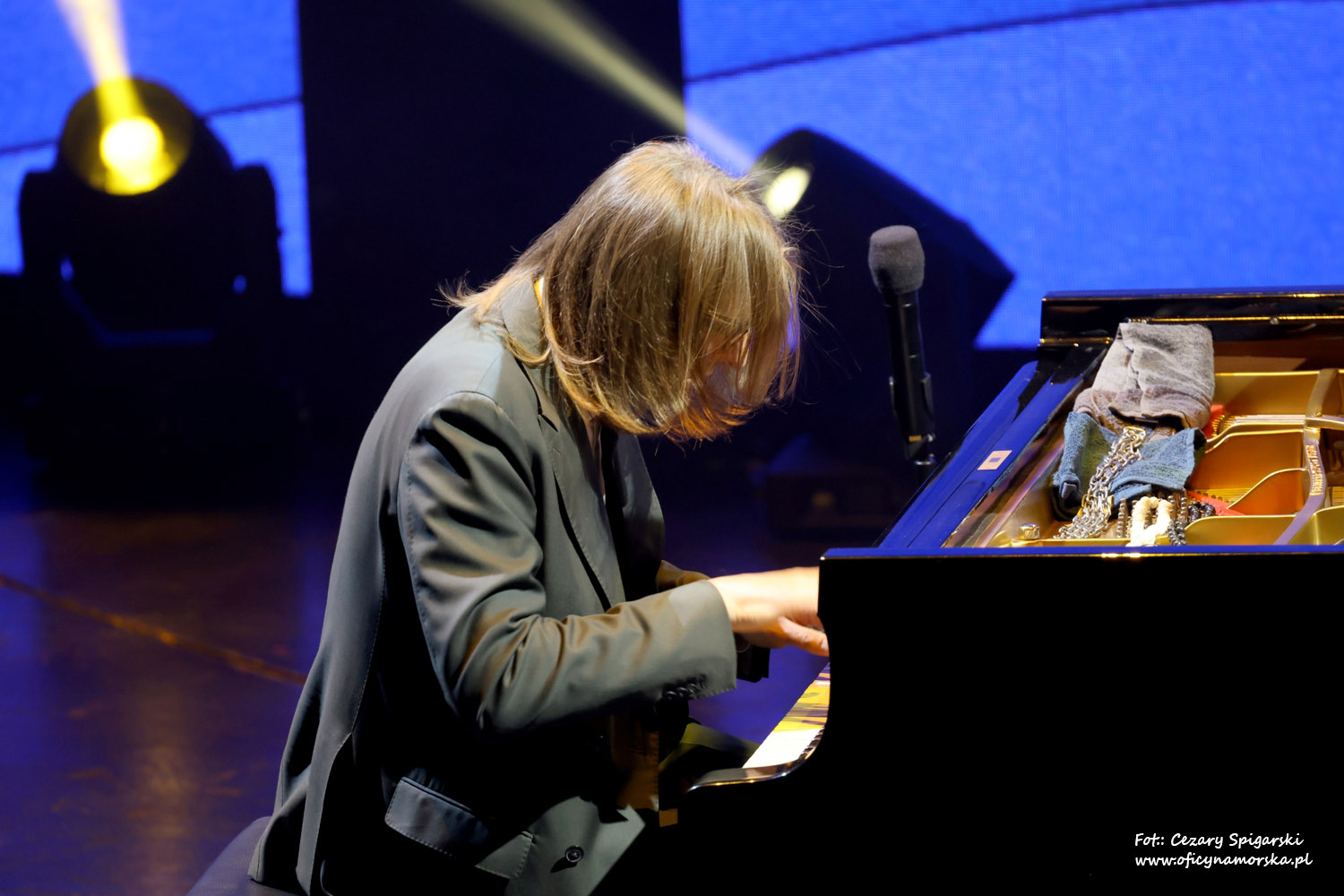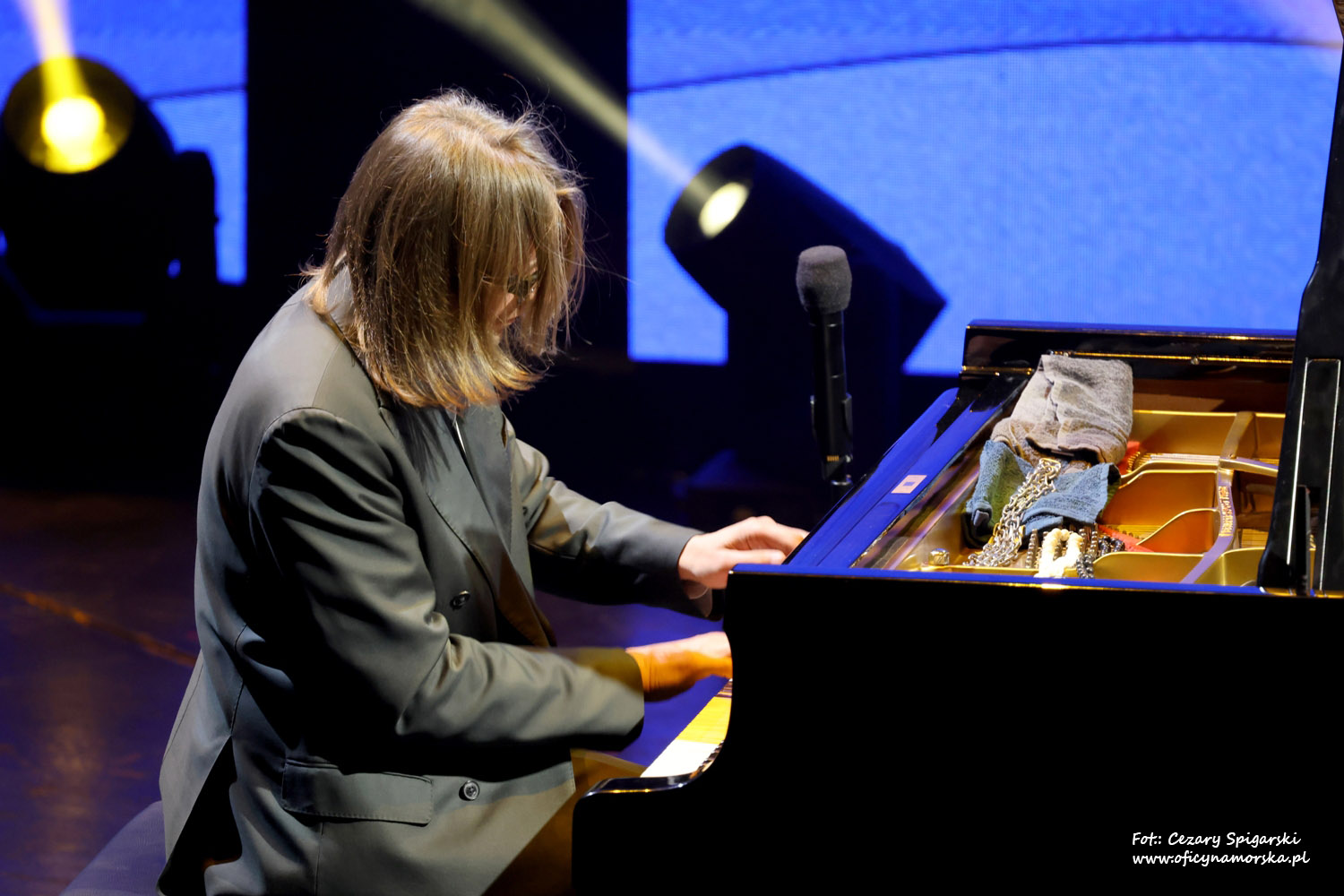 Na zakończenie zebrani wysłuchali koncertu fortepianowego. Koncert w wykonaniu Leszka Możdżera (z prośbą organizatorów skierowaną do fotoreporterów o wykonywanie zdjęć tylko przez pierwsze pięć minut – respektowaną przez nas wszystkich), który wykazał się niezwykłym talentem muzycznym, nieskazitelnym wykonaniem, jednak… Odniosłem wrażenie, że nawet przyjmując za pewnik Jego ekstrawagancję (choćby brak obuwia widoczny na zdjęciach), nie mogłem zrozumieć zwykłych, a zasadniczych braków wychowania. Nie wiedziałem czy występuje przed nami ten znany artysta, czy może Jego dubler – nie raczył spojrzeć na nas zza zasłony włosów, wyrażał podziękowania i informował o kolejnych swoich muzycznych przedstawieniach, jednak, siedząc na zydlu, do nikogo się nie odwrócił, nie spojrzał na widownię, popijał przy tym (chyba) wodę z butelki, co było słychać i widać. Mam na takie zachowanie własną nazwę… Mimo tego na zakończenie sala nagrodziła jazzmana gromkimi brawami, no cóż… (dop. red. Cezary Spigarski)
