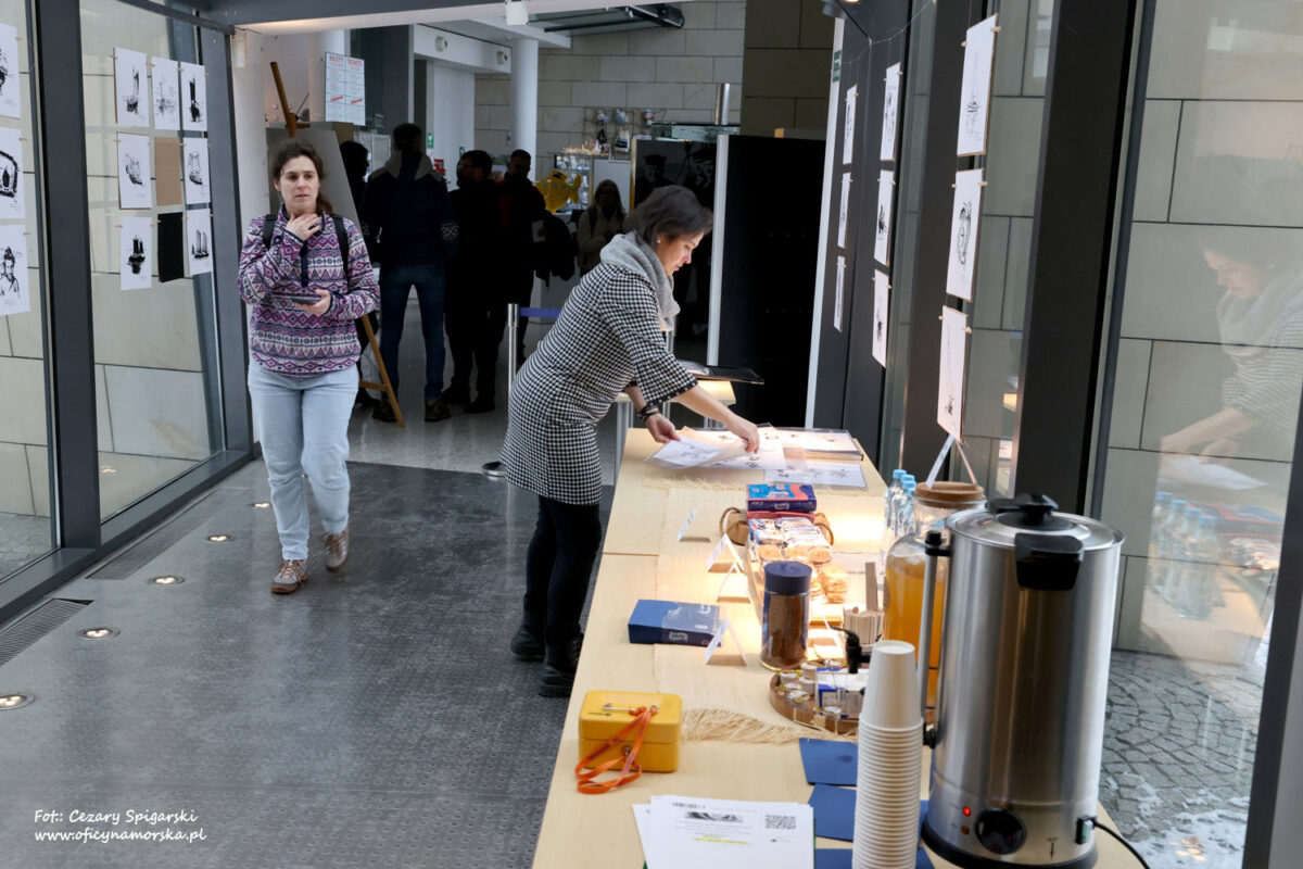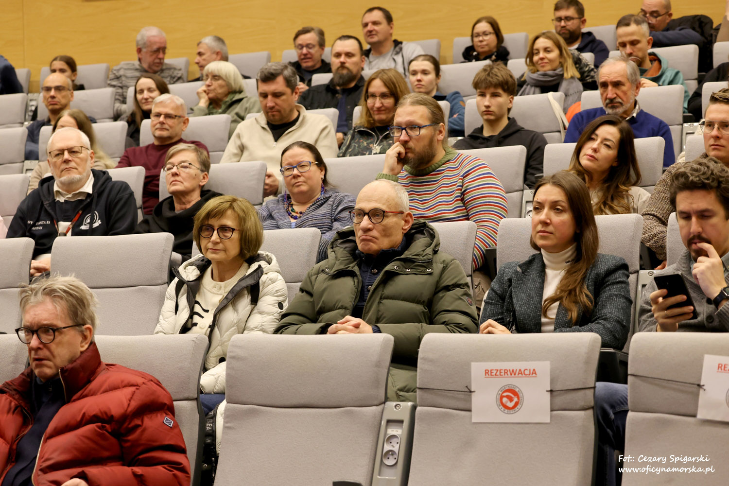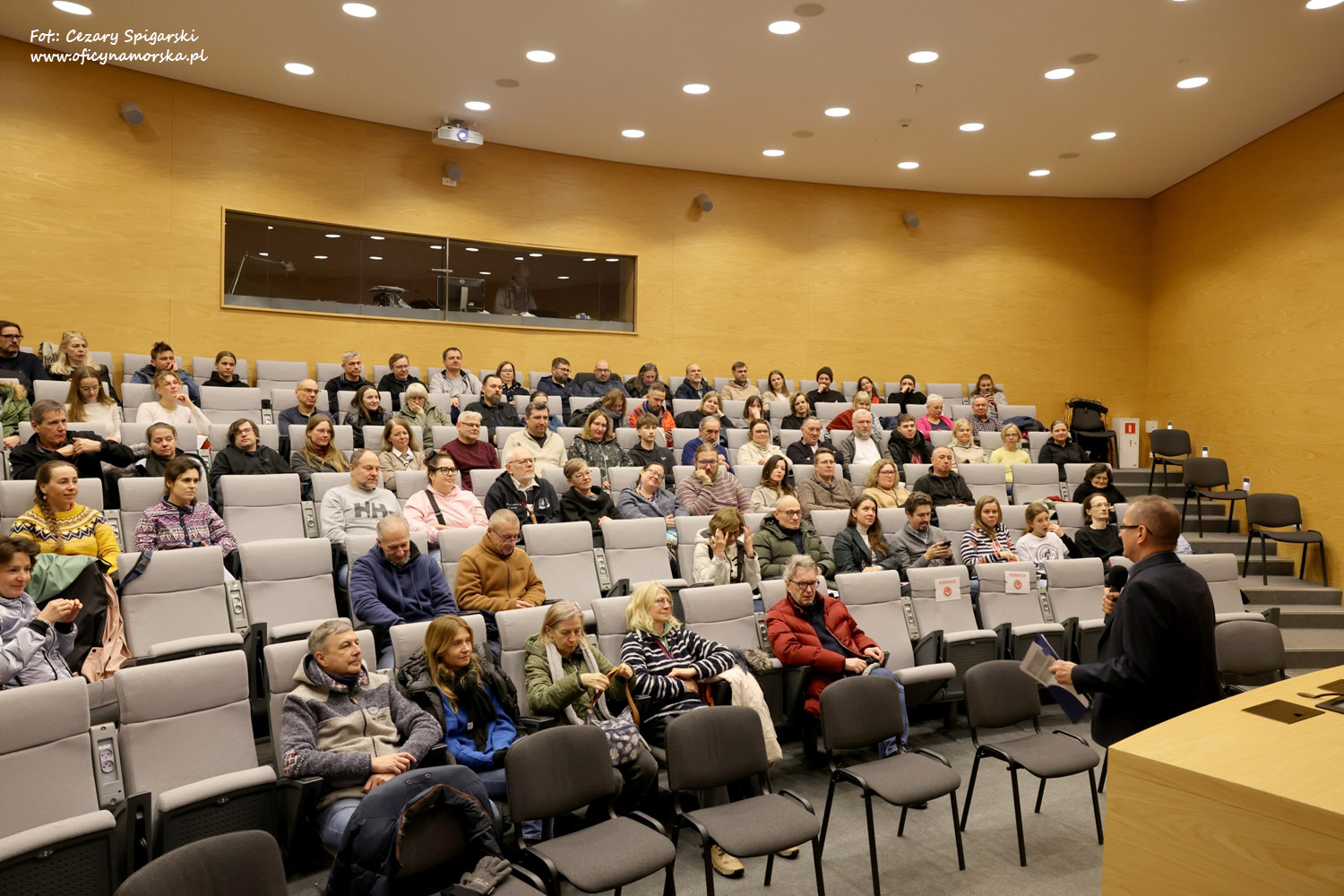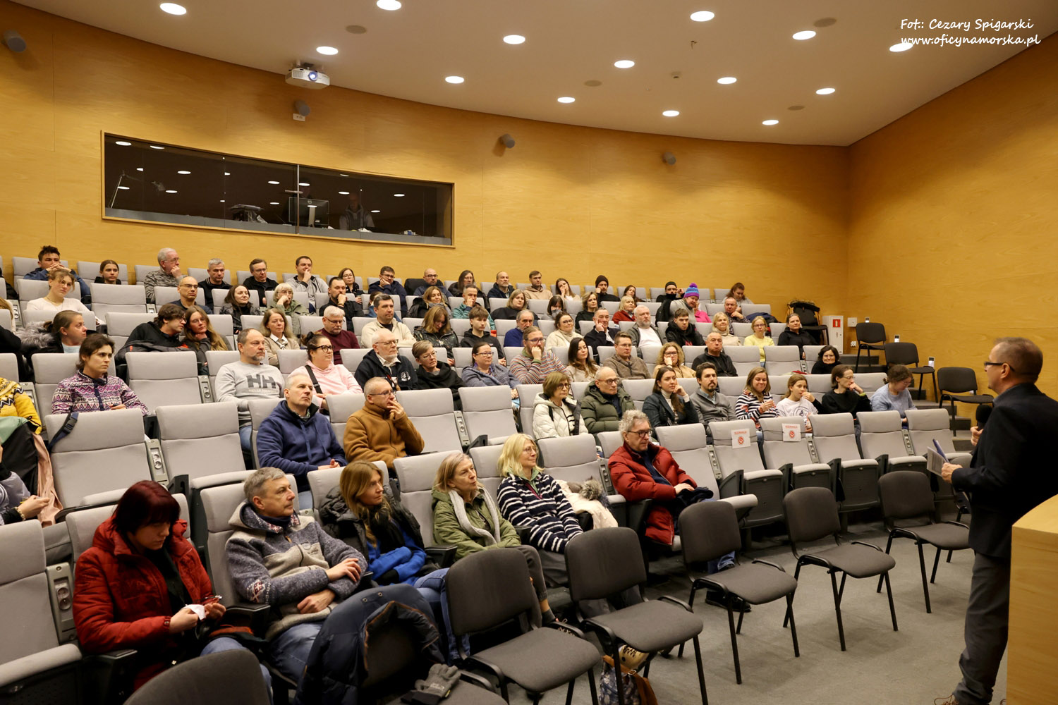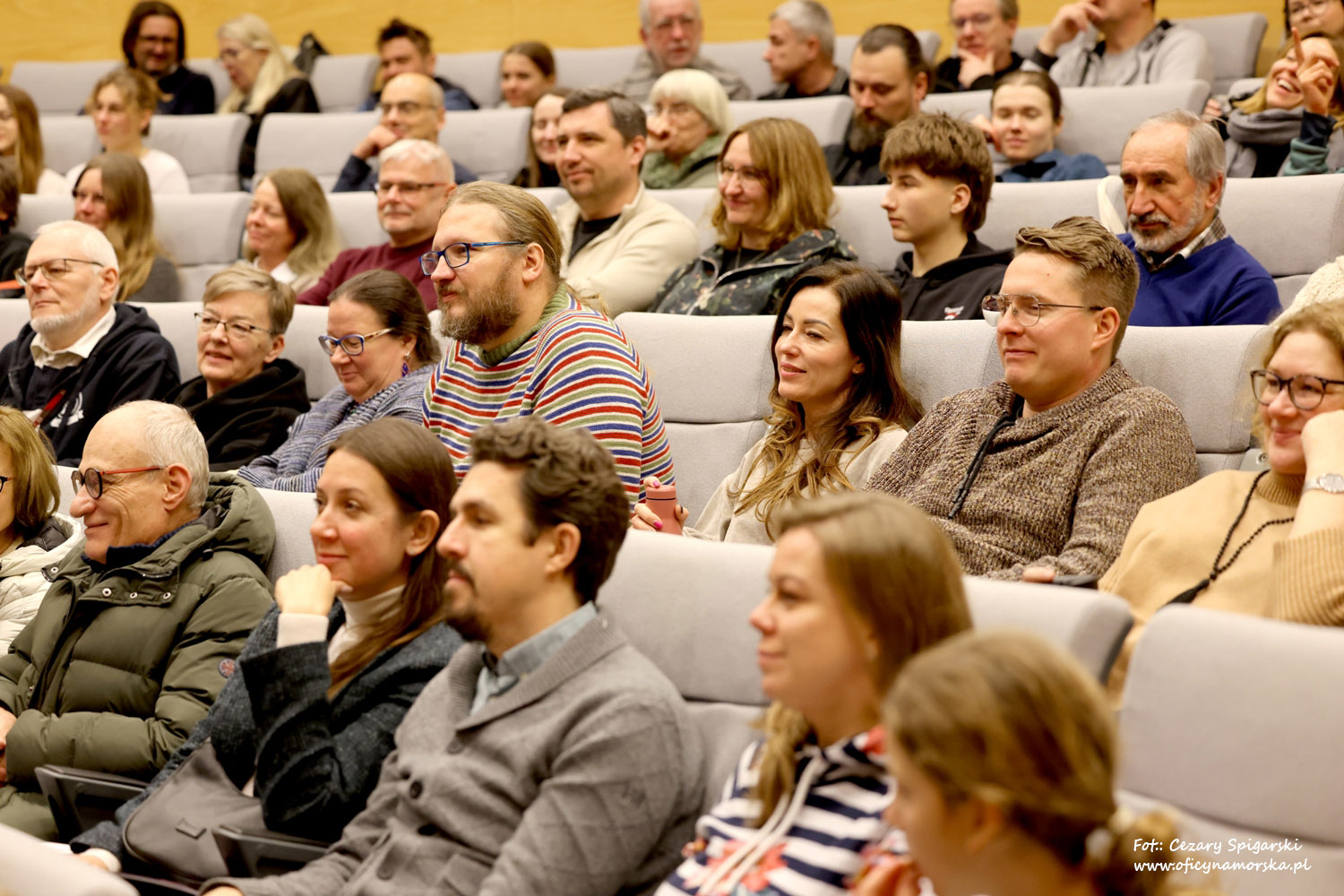 Trzeba przyznać, że sala pierwszego dnia festiwalu była pełna, cały czas wypełniała się jeszcze spóźnialskimi. Bilety wyprzedano dużo wcześniej. Festiwalowi towarzyszyła wystawa szkiców marynistycznych, inspirowanych m.in. prezentowanymi właśnie filmami, autorstwa Elżbiety Drążkiewicz (dop. red. CS).