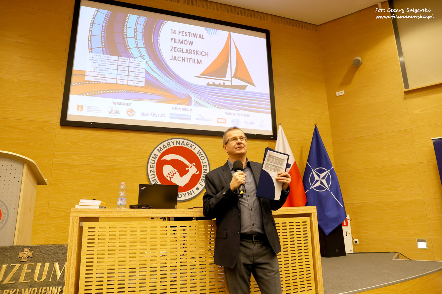 7 lutego br. w Muzeum Marynarki Wojennej w Gdyni, o godz. 15.00 rozpoczęto 14. Festiwal Filmów Żeglarskich. Gości witał jeden z organizatorów Festiwalu Andrzej Minkiewicz (drugi z organizatorów Lechosław Bar, zapowiedział swój nieco późniejszy przyjazd). Pokrótce, dla tych widzów, którzy po raz pierwszy trafili na tę filmową prezentację, przypomniał, że impreza ma już 14-ście lat, początkowo odbywała się w Warszawie, a od kilku lat w gościnnych progach gdyńskiego Muzeum Marynarki Wojennej. Pierwsze pokazy odbywały się poprzez pozyskanie materiałów dokumentalnych, znalezionych w archiwach telewizji polskiej, głównie jej oddziałów w Warszawie, Gdańsku i Szczecinie, ale także docierał do innych stacji w całym kraju, poszukując dokumentalnych filmów o tematyce marynistycznej.