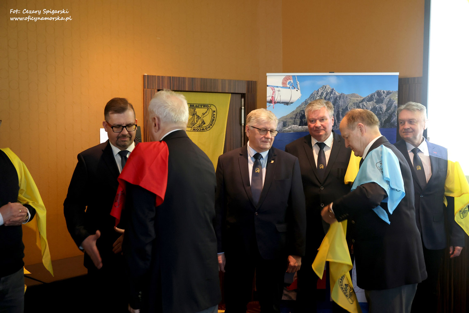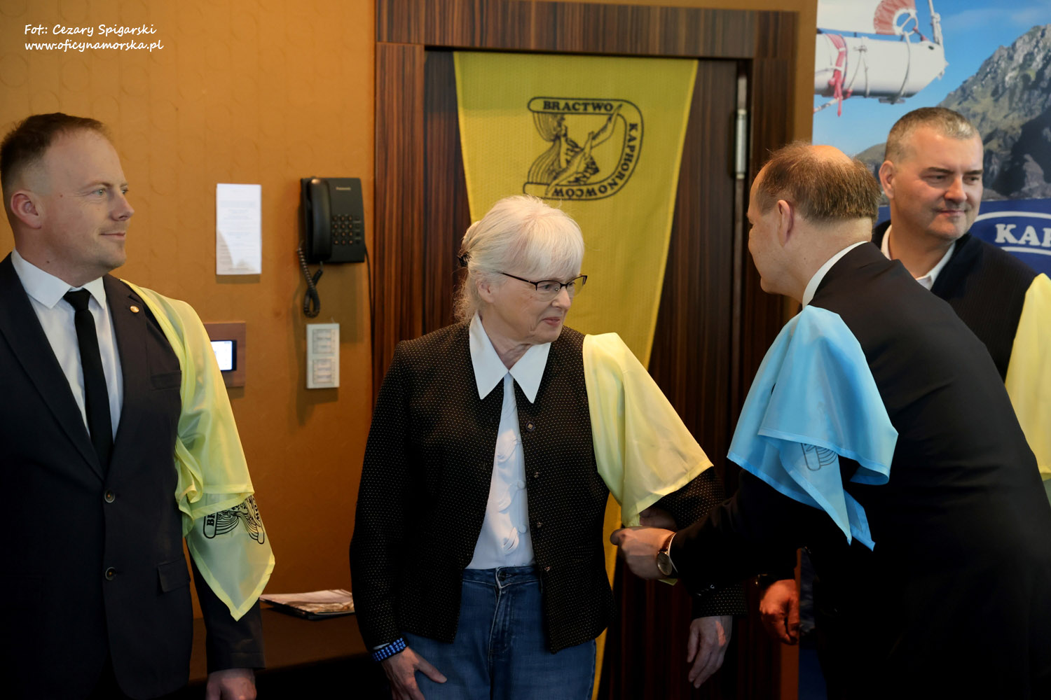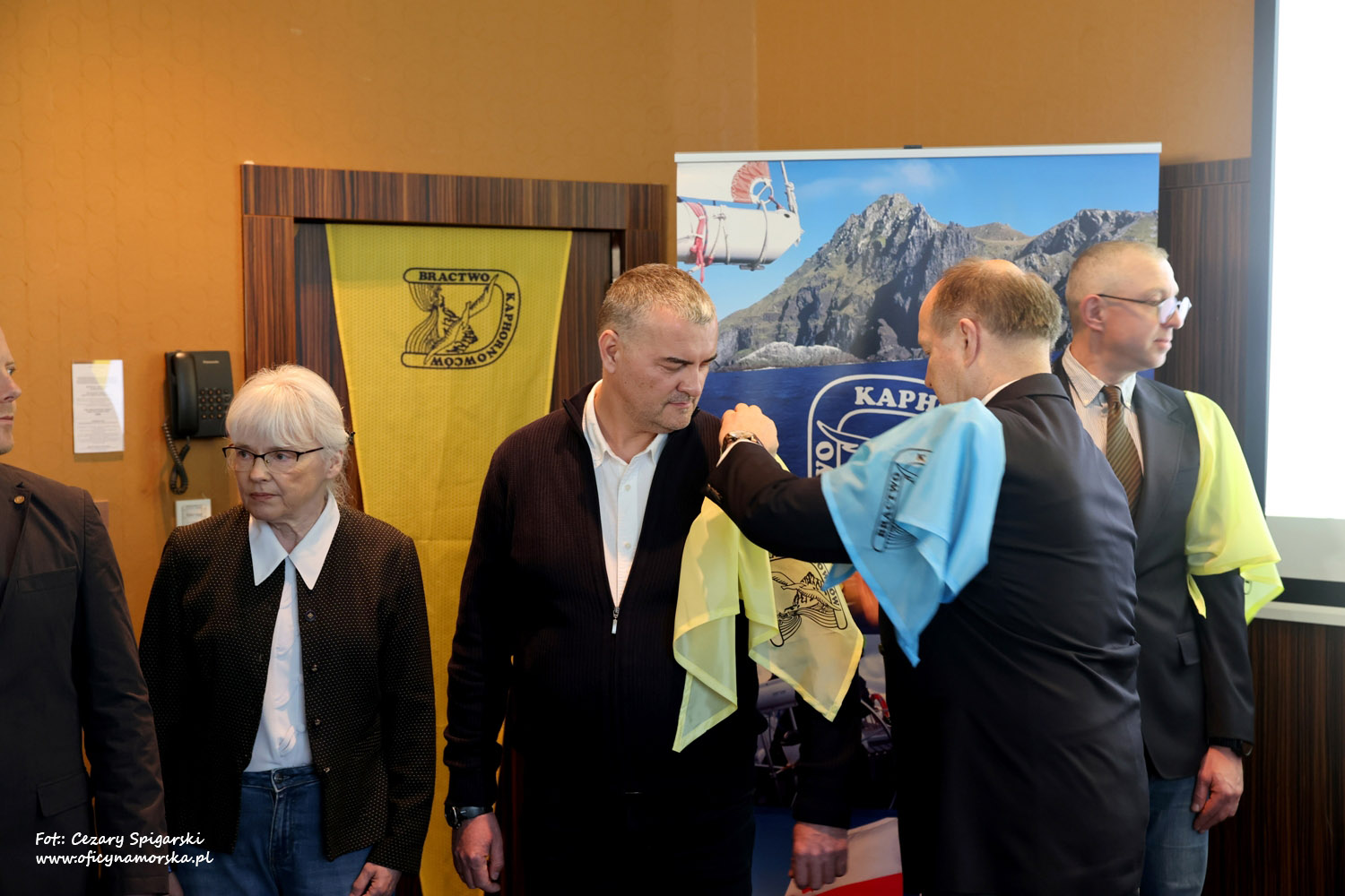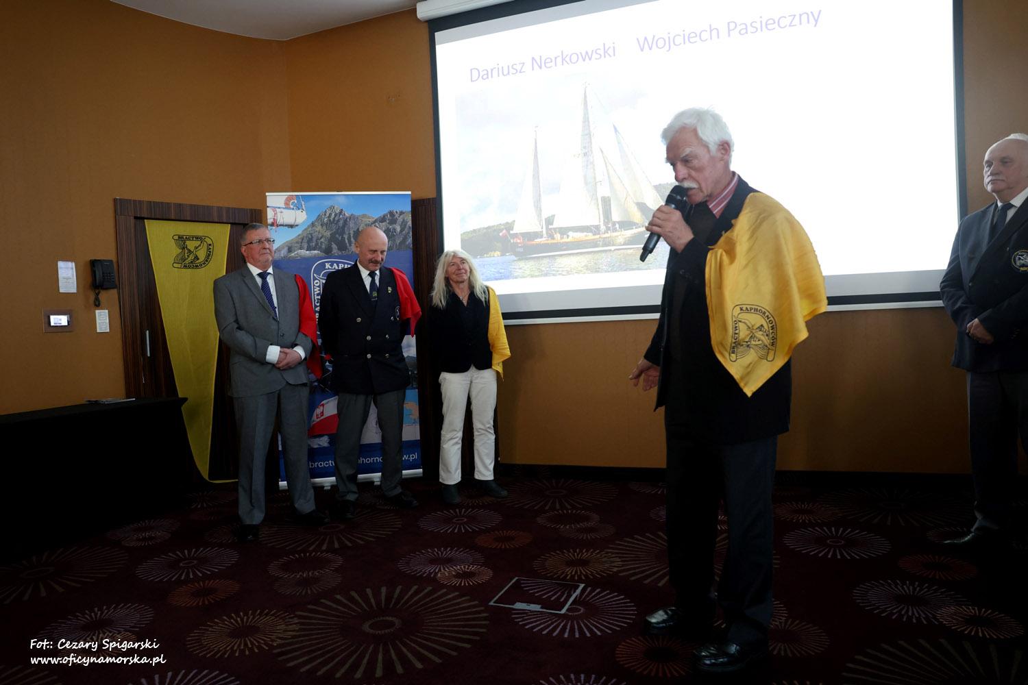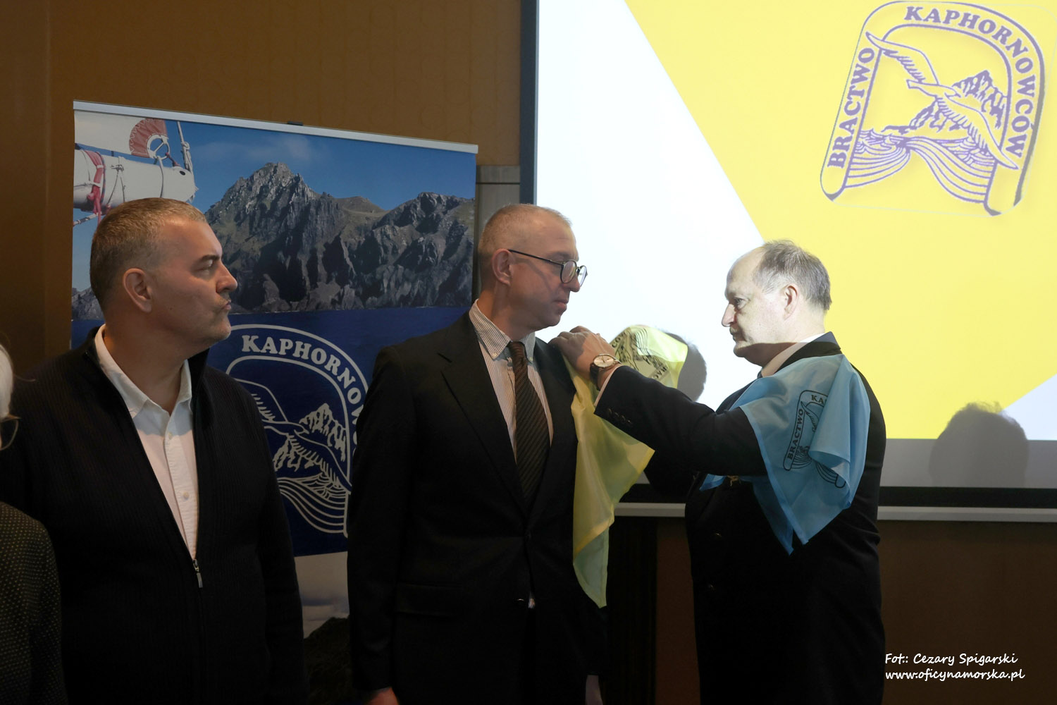 Żółte chusty, znak Bractwa Kaphornowcówi, nadanie imienia Albatrosa Hornu i wręczenia dyplomów dokonali: kadm. Czesław Dyrcz – były Grotmaszt i kmdr Marek Padjas – obecny Grotmaszt.