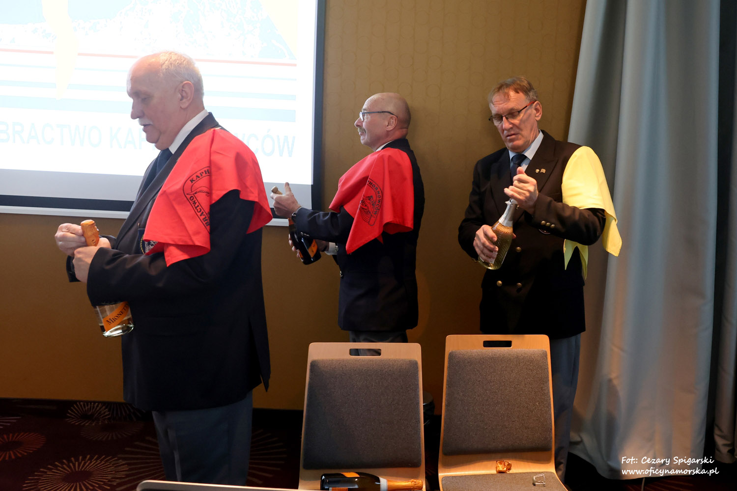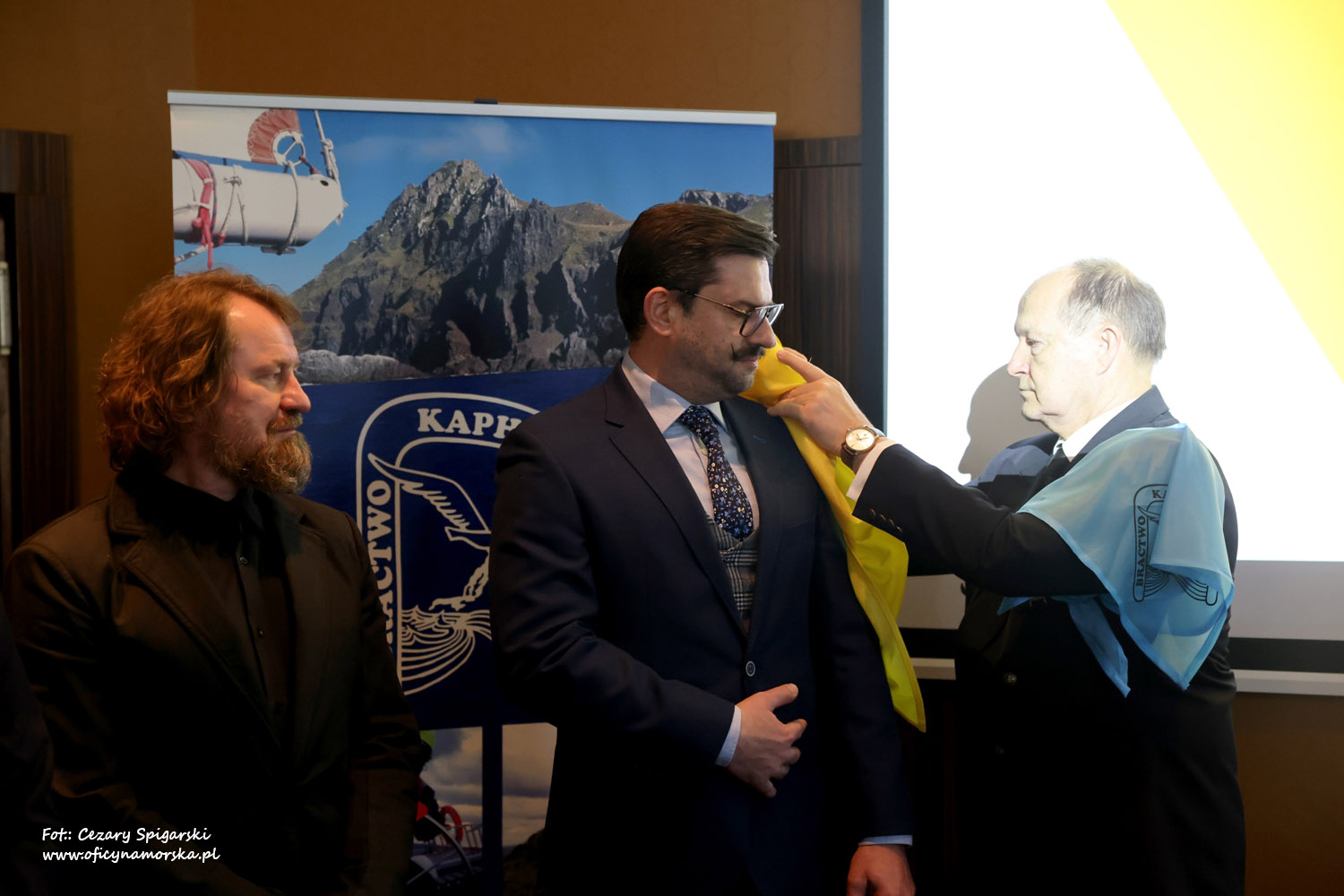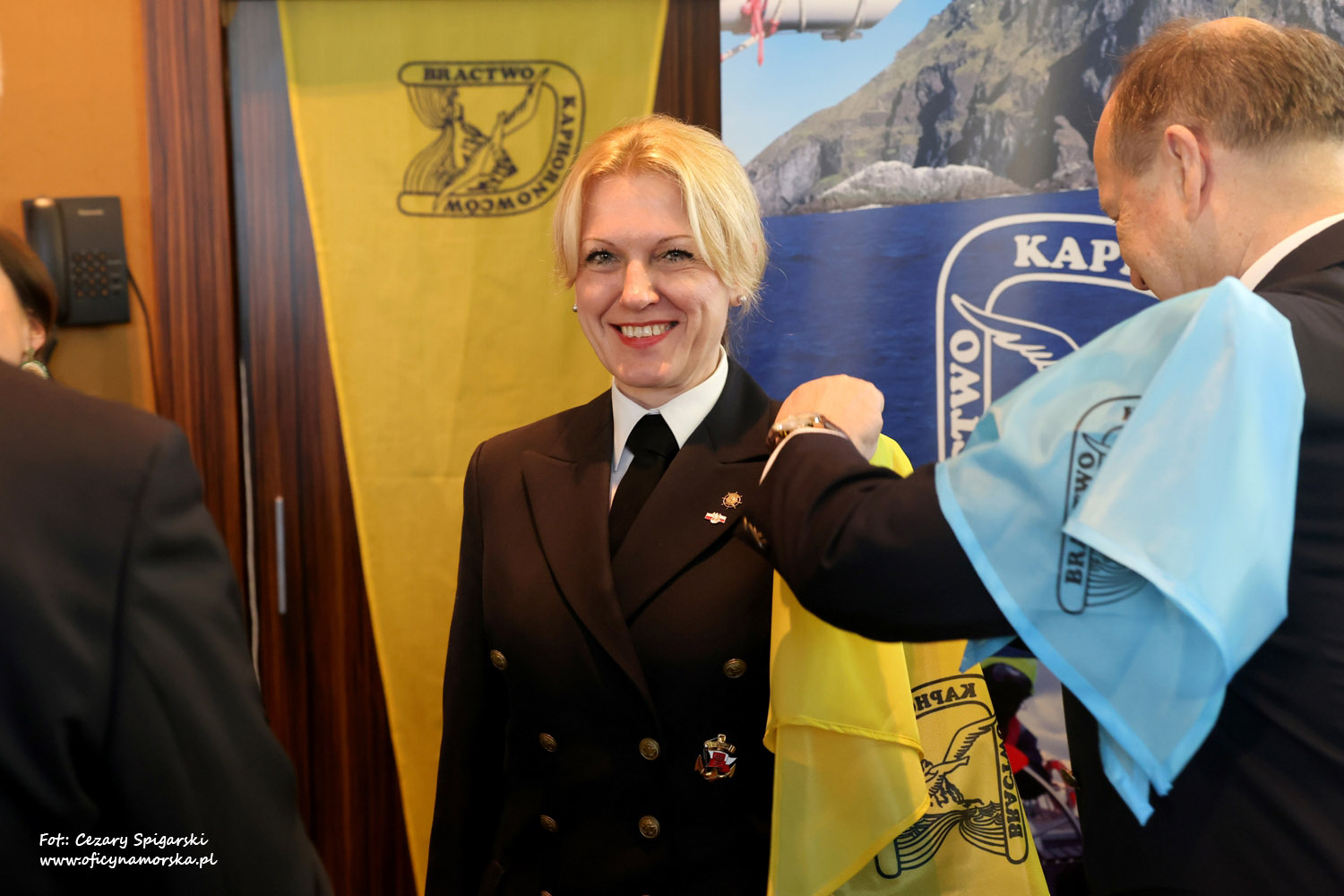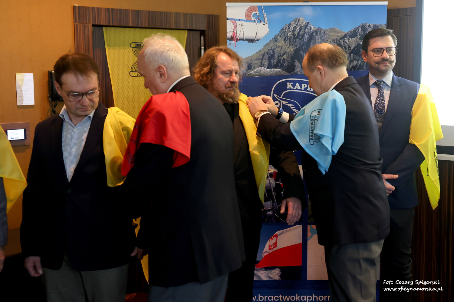 Żółte chusty, znak Bractwa Kaphornowcówi, nadanie imienia Albatrosa Hornu i wręczenia dyplomów dokonali: kadm. Czesław Dyrcz – były Grotmaszt i kmdr Marek Padjas – obecny Grotmaszt.