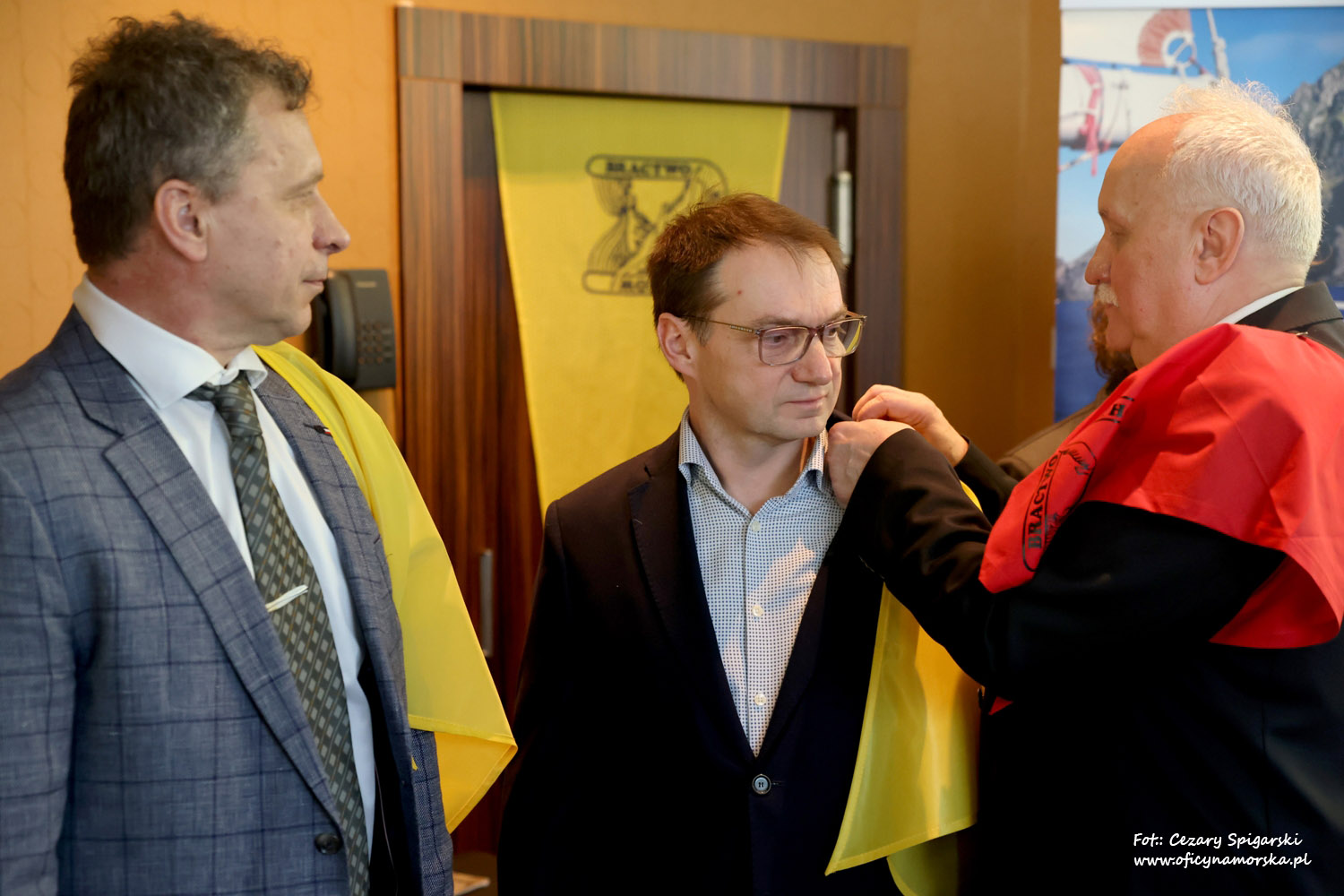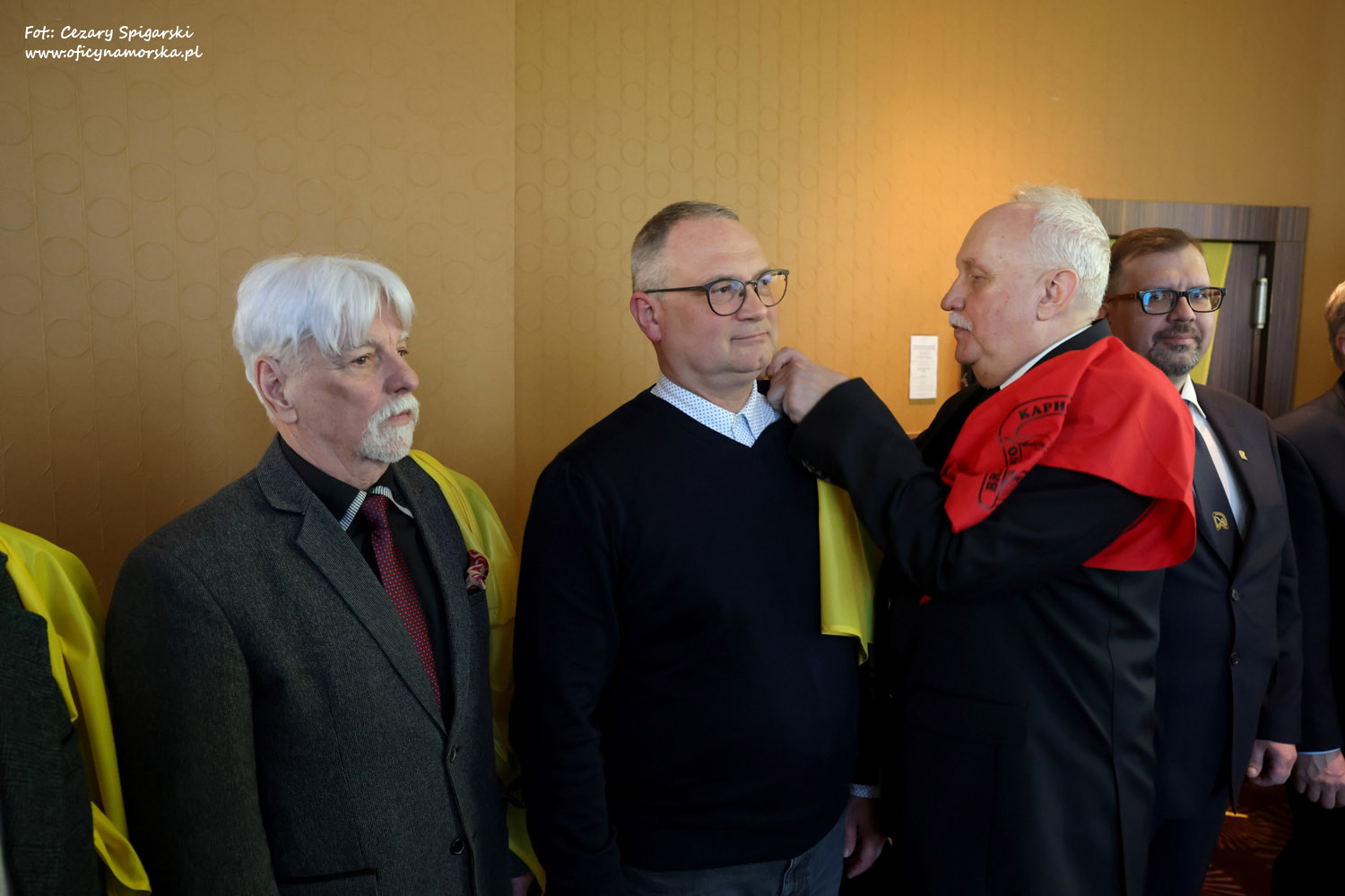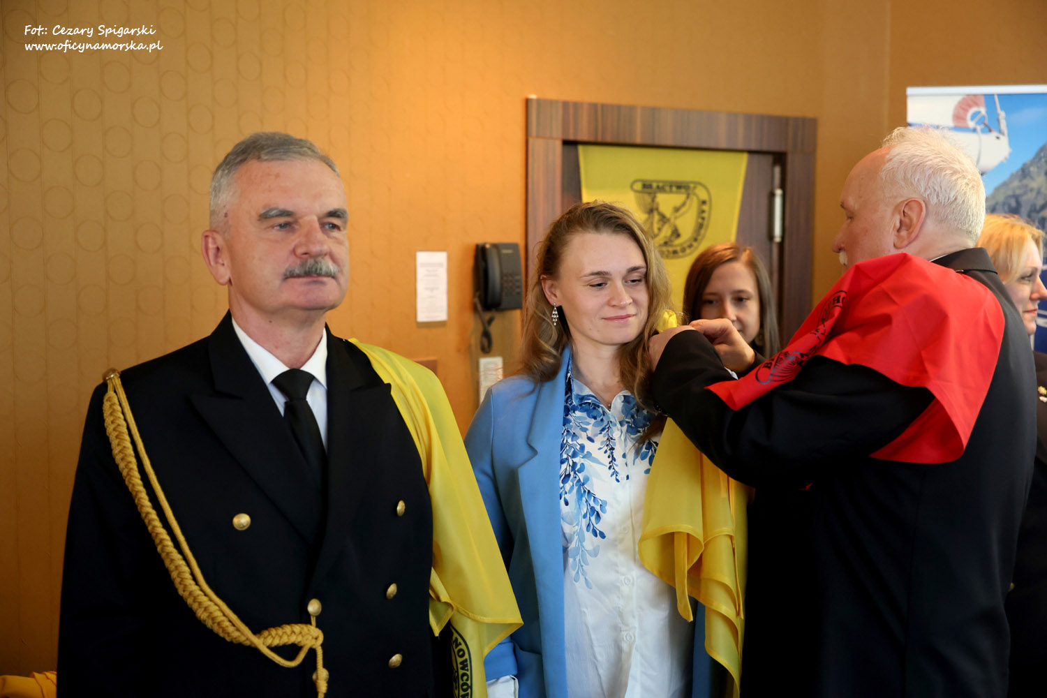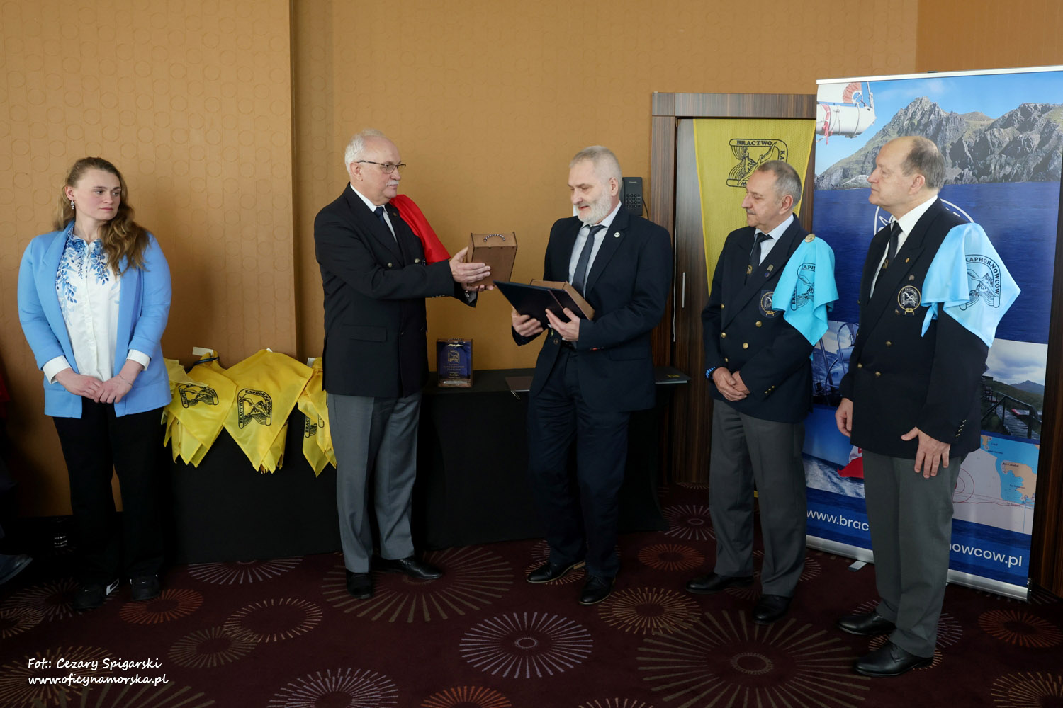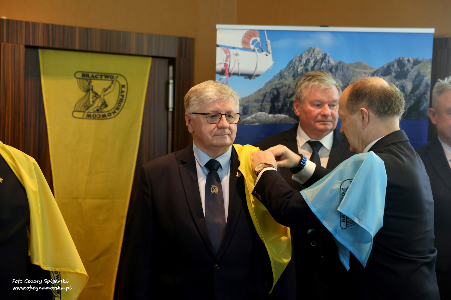 Żółte chusty, znak Bractwa Kaphornowcówi, nadanie imienia Albatrosa Hornu i wręczenia dyplomów dokonali: kadm. Czesław Dyrcz – były Grotmaszt i kmdr Marek Padjas – obecny Grotmaszt.