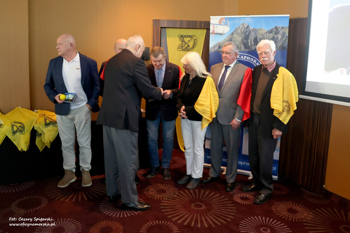 Kolejnym punktem były wyróżnienia i podziękowania. Medal 100-lecia Polskiego Związku Żeglarskiego z rąk Katarzyny Domańskiej wiceprezesa PZŻ ds. sportu powszechnego i szkolenia otrzymał kapitan Wojciech Pasieczny (czterokrotne opłynięcie Przylądka Horn).